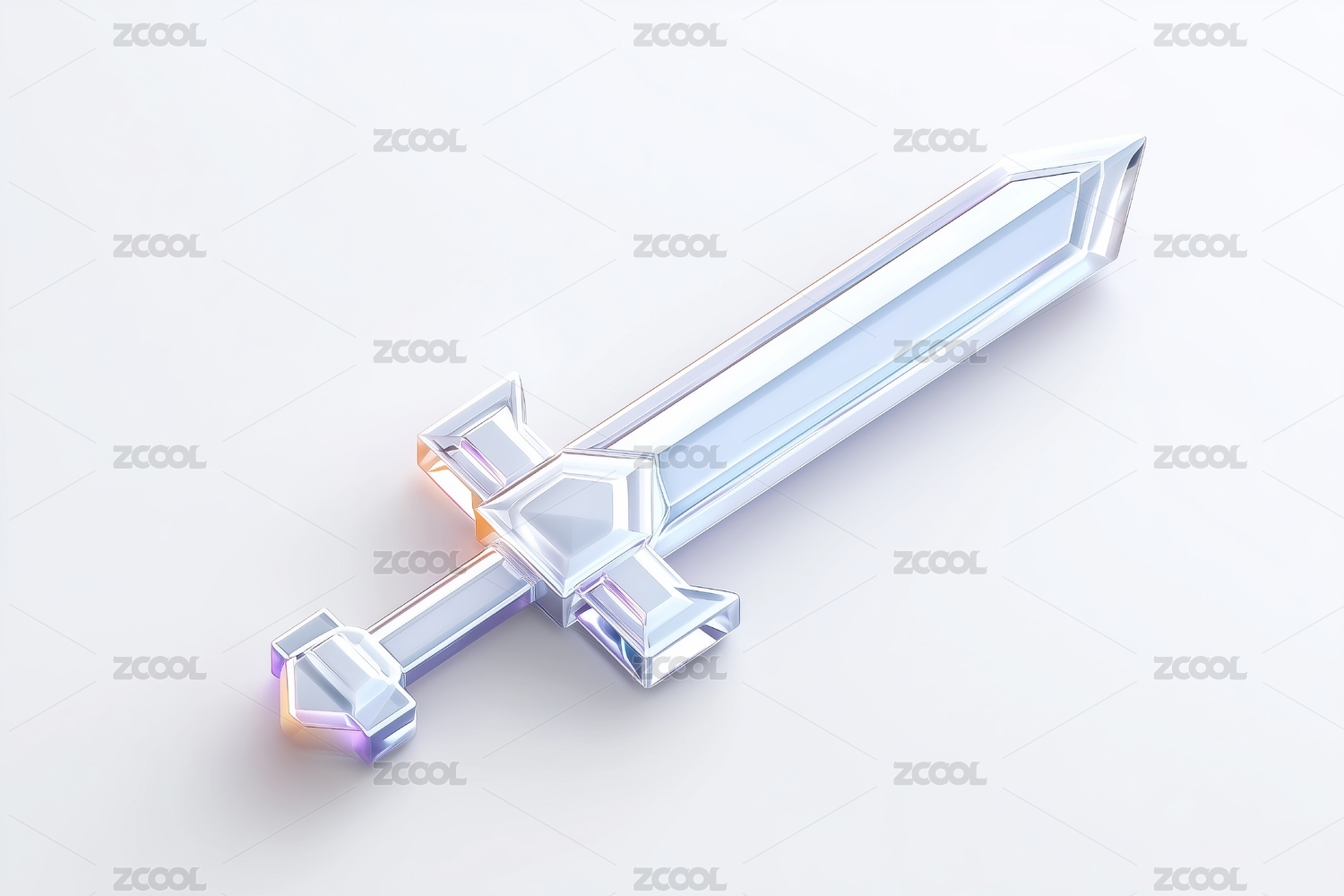 白底珠光色游戏装备透明兵器短剑3D卡通图