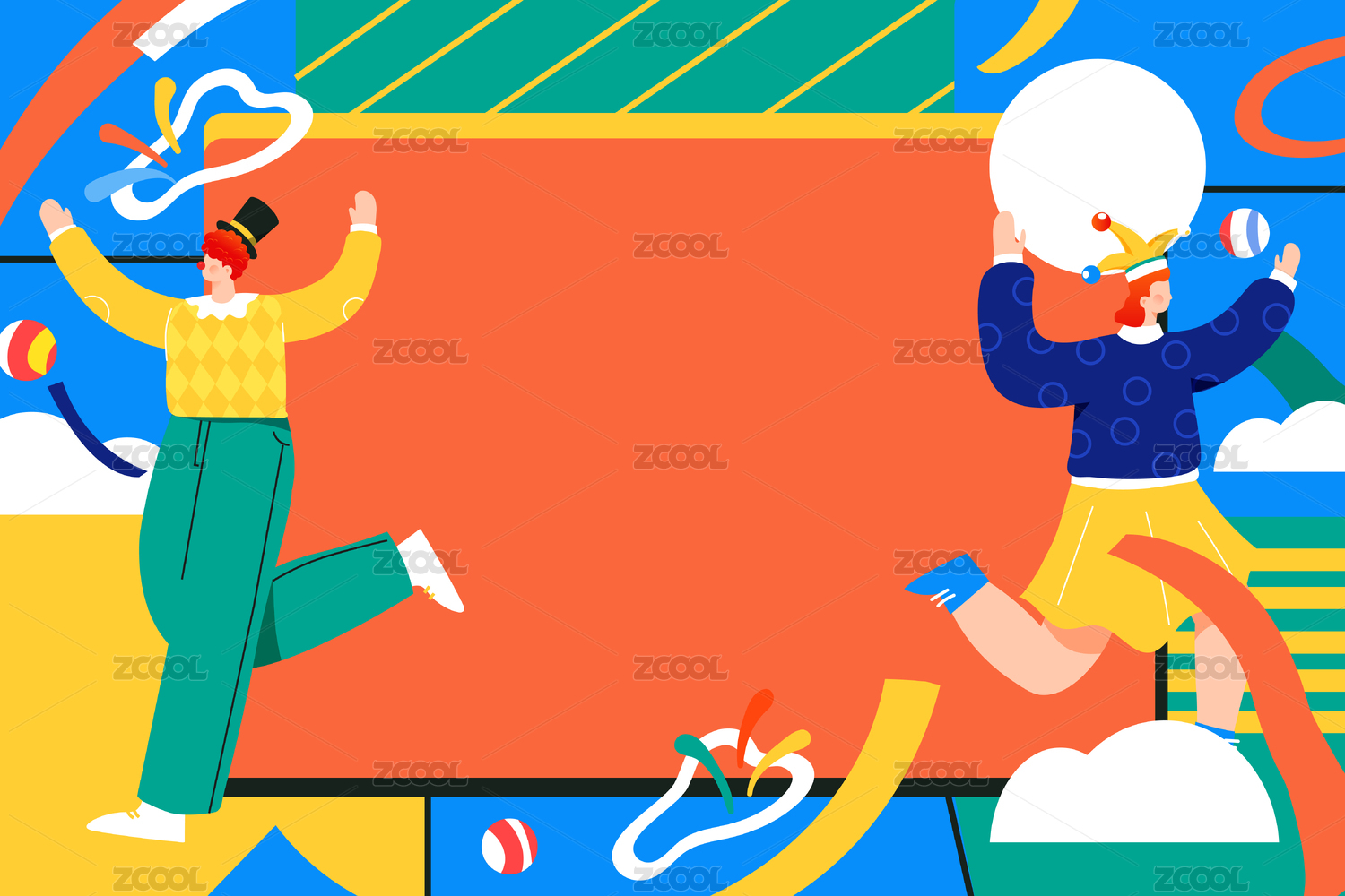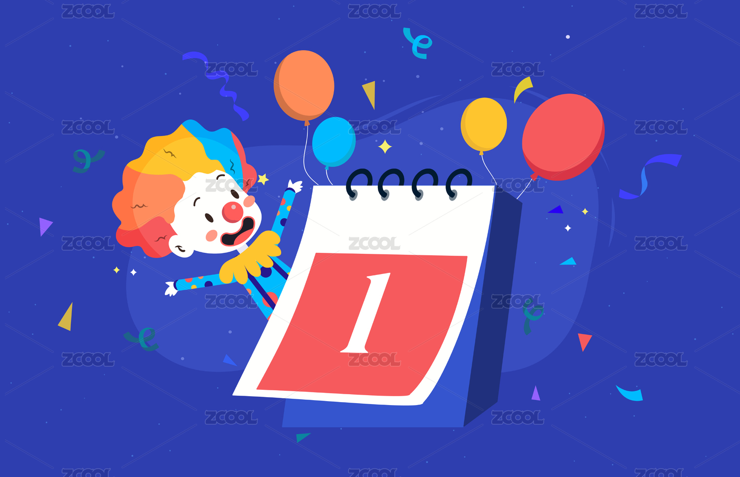 四月愚人节小丑杂耍插画节日恶搞整蛊海报