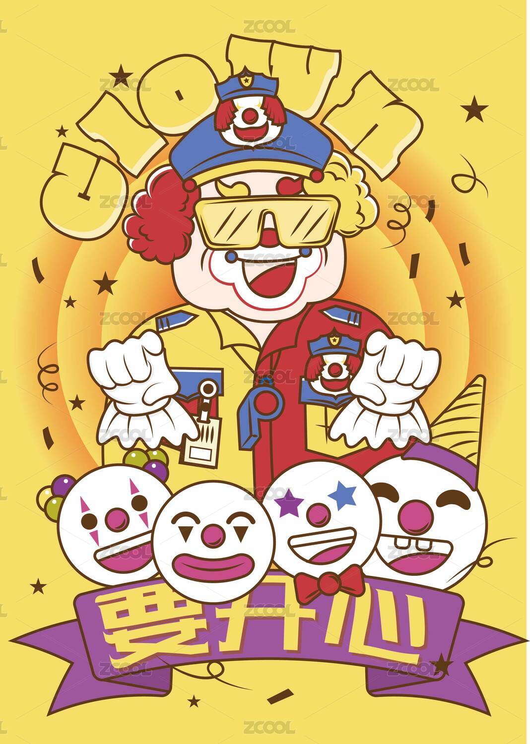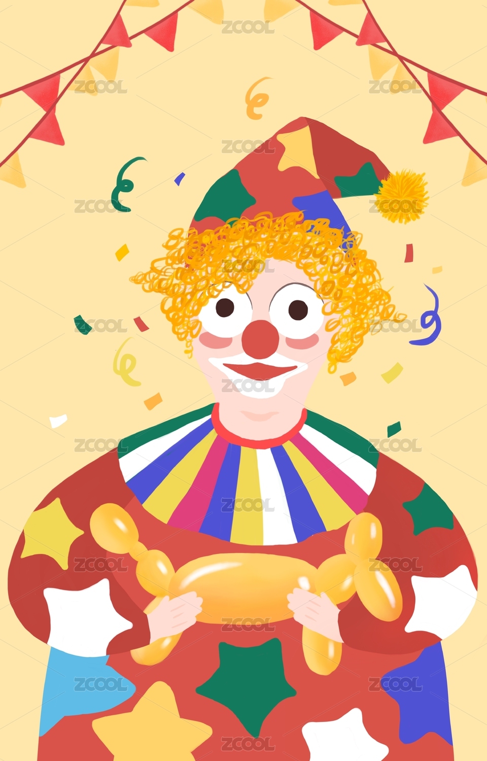 愚人节恶搞整蛊插画儿童节小丑表演活动海报