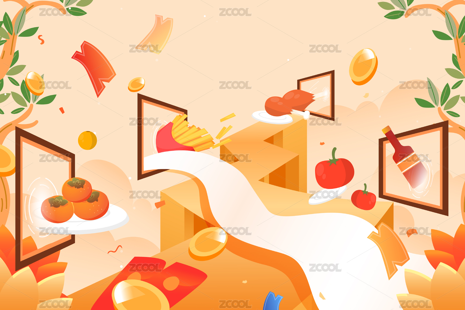 节日活动钱包卡券金币矢量图