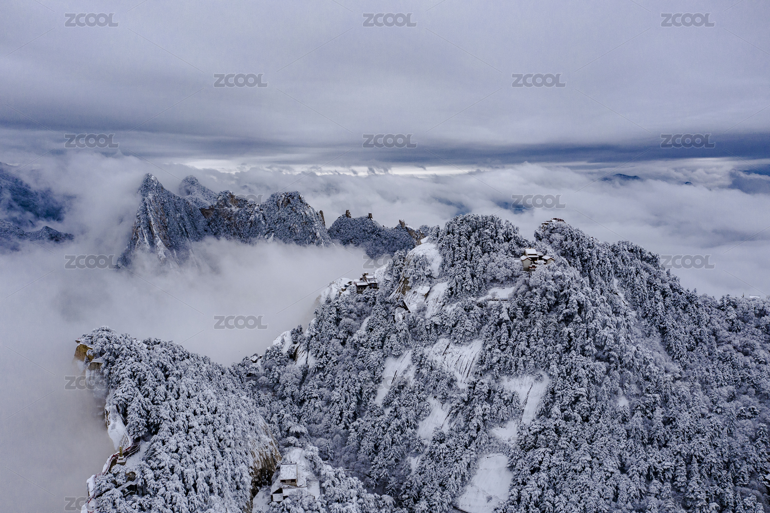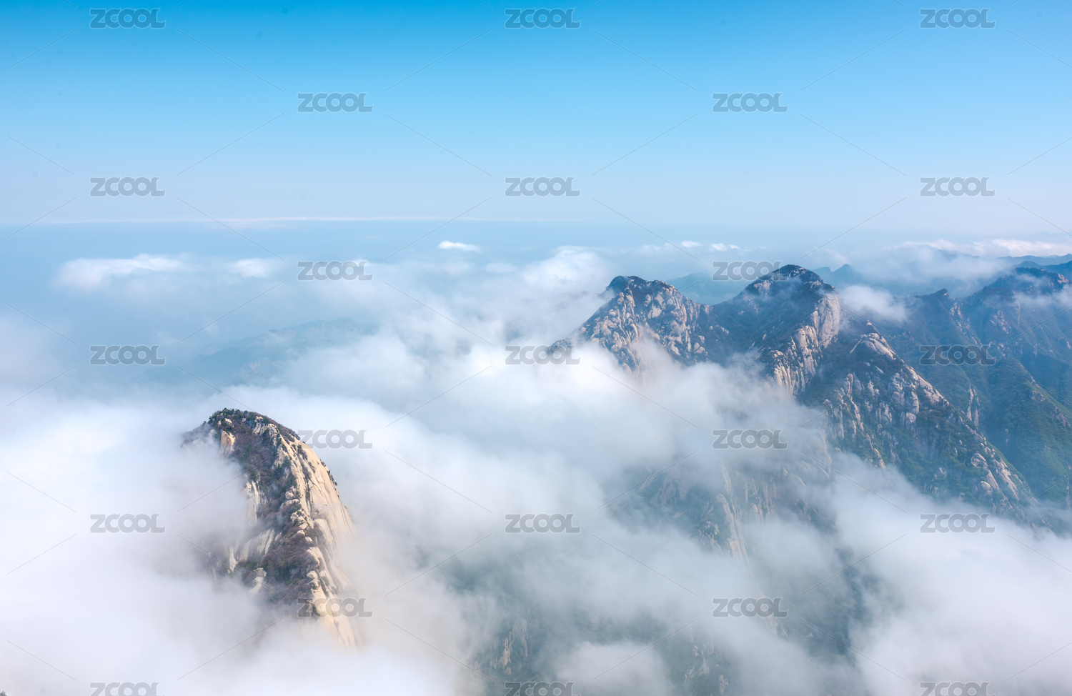 陕西省西安市华山西峰顶近看屹立于云海的罗汉松