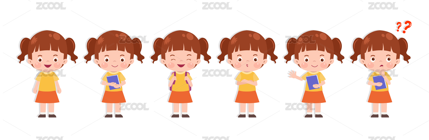 可爱女孩正面动态卡通元素矢量图