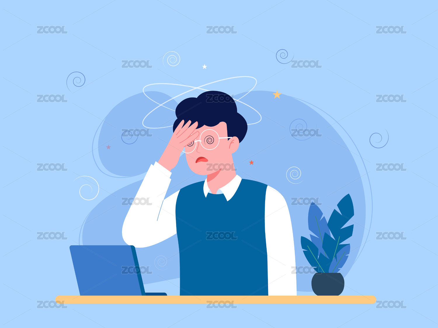 卡通手绘头疼插画
