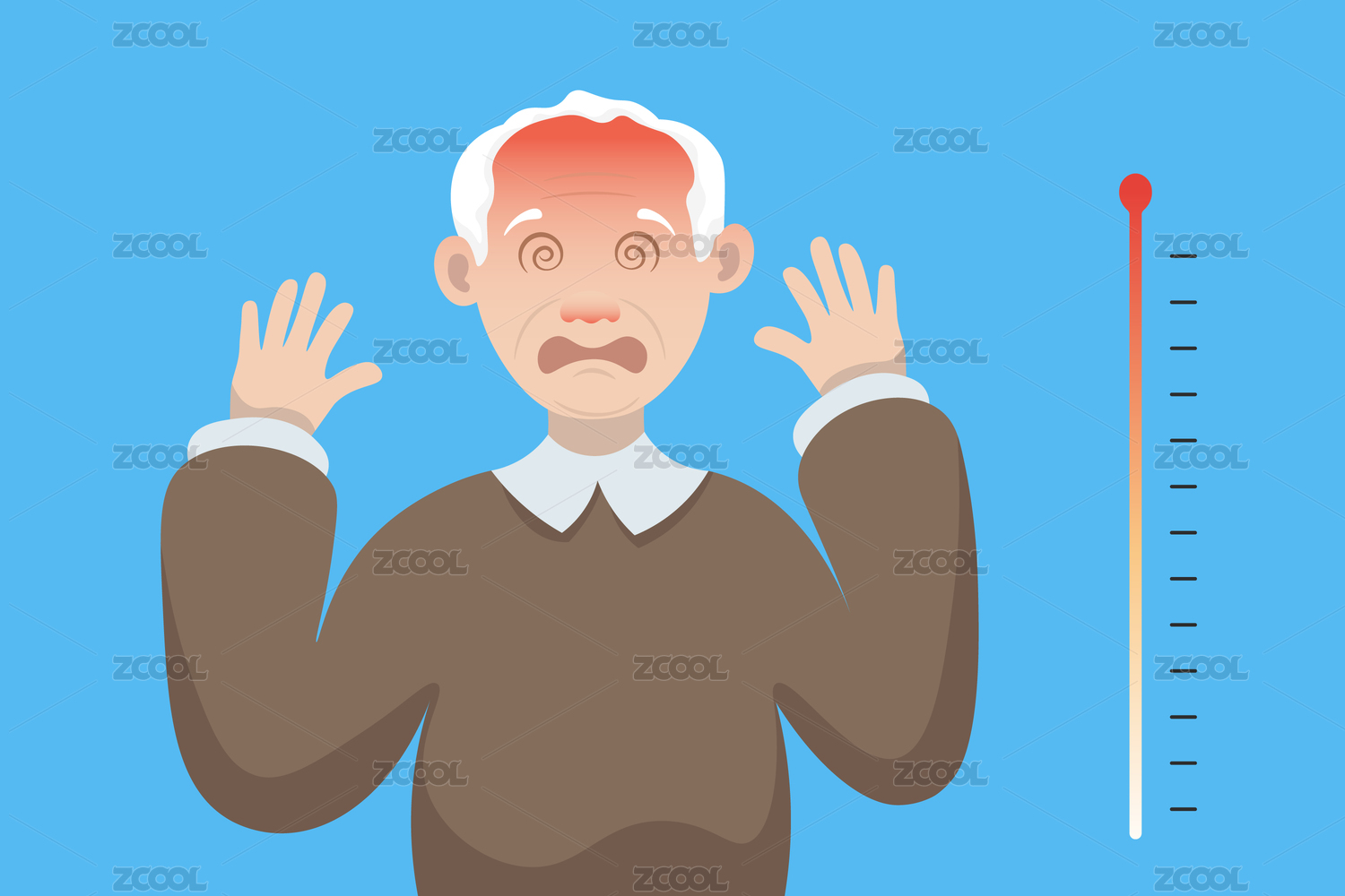 相关疾病引起的老人头晕症状插画