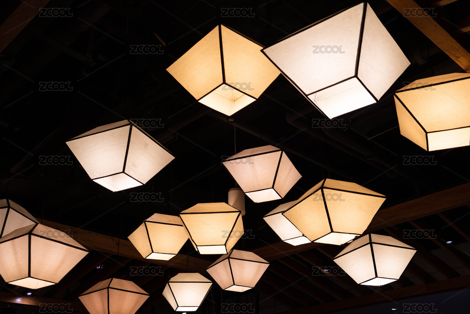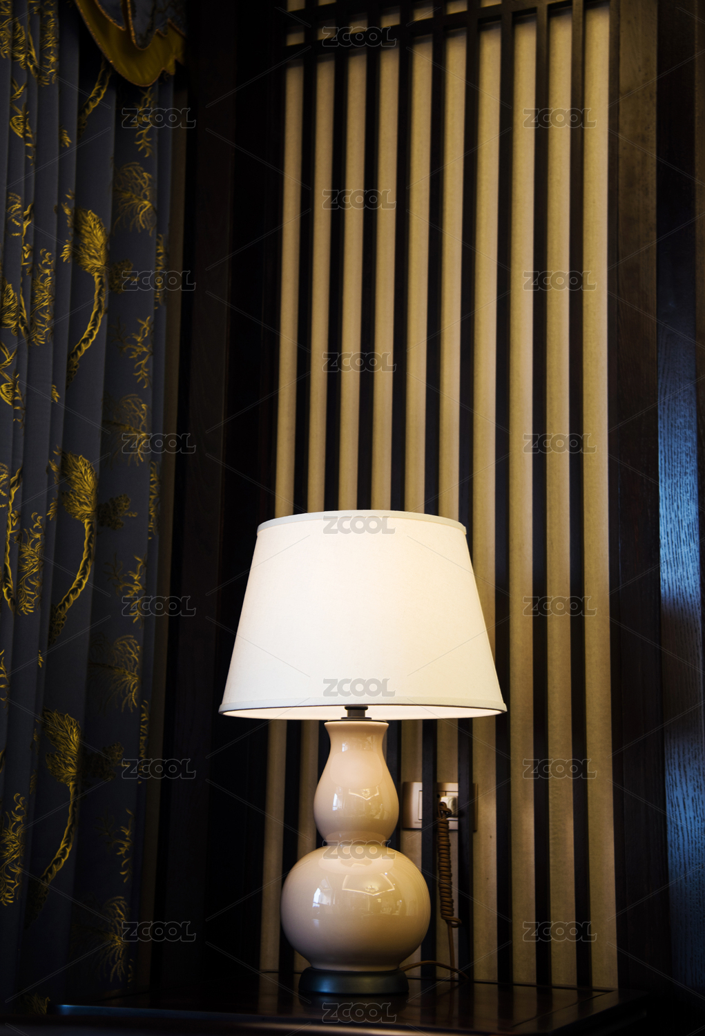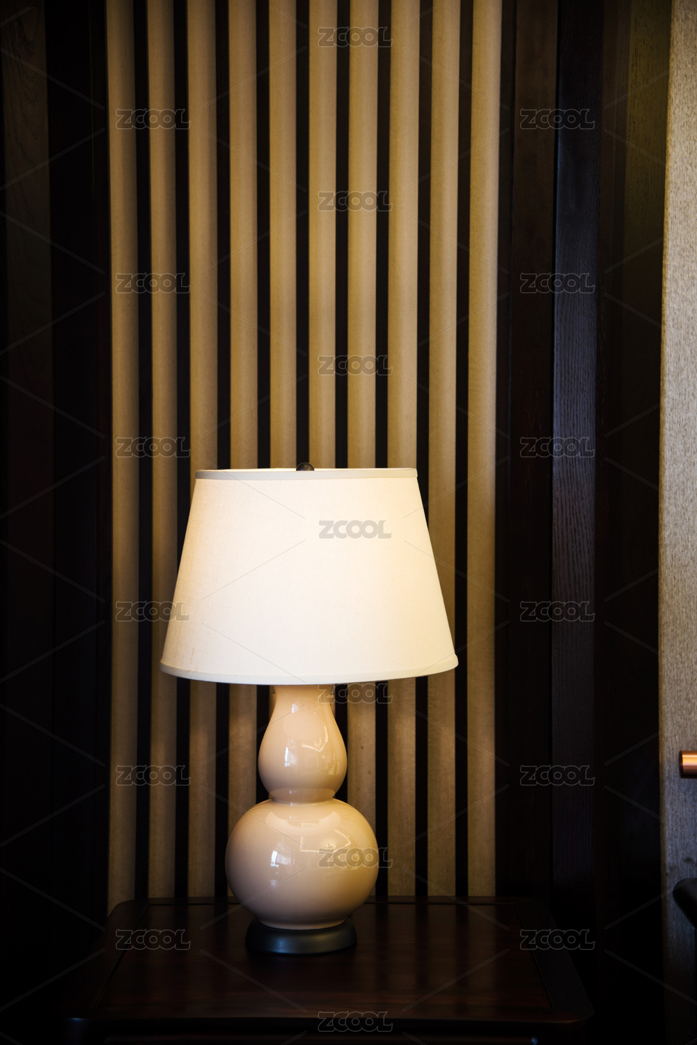 室内角落里一盏暖色灯光的中式灯具