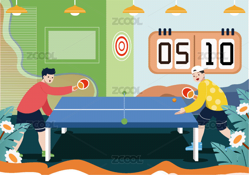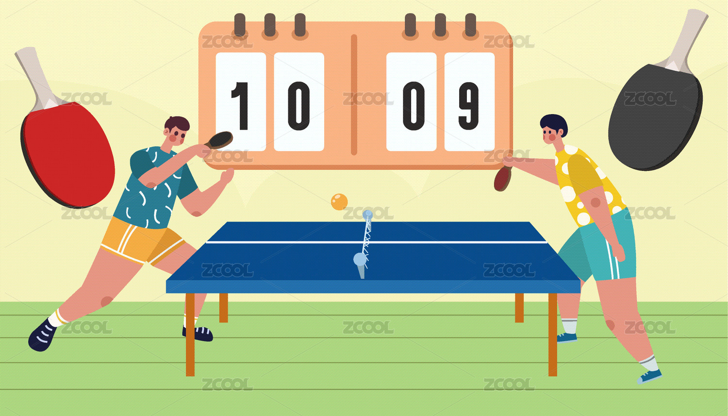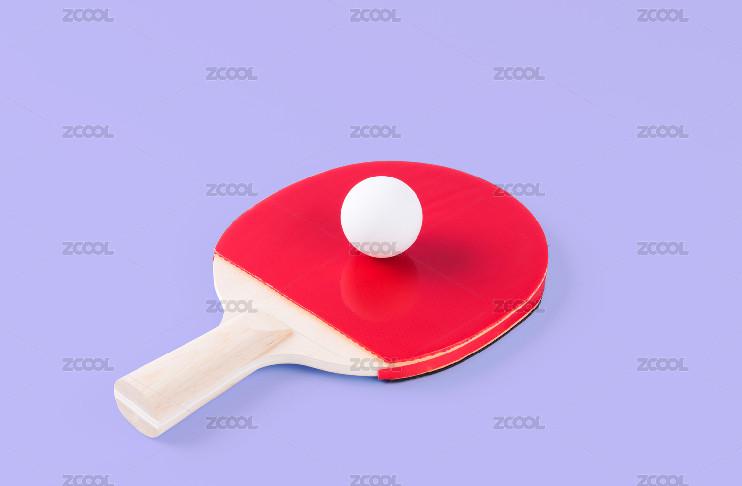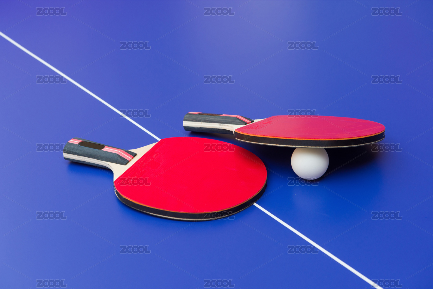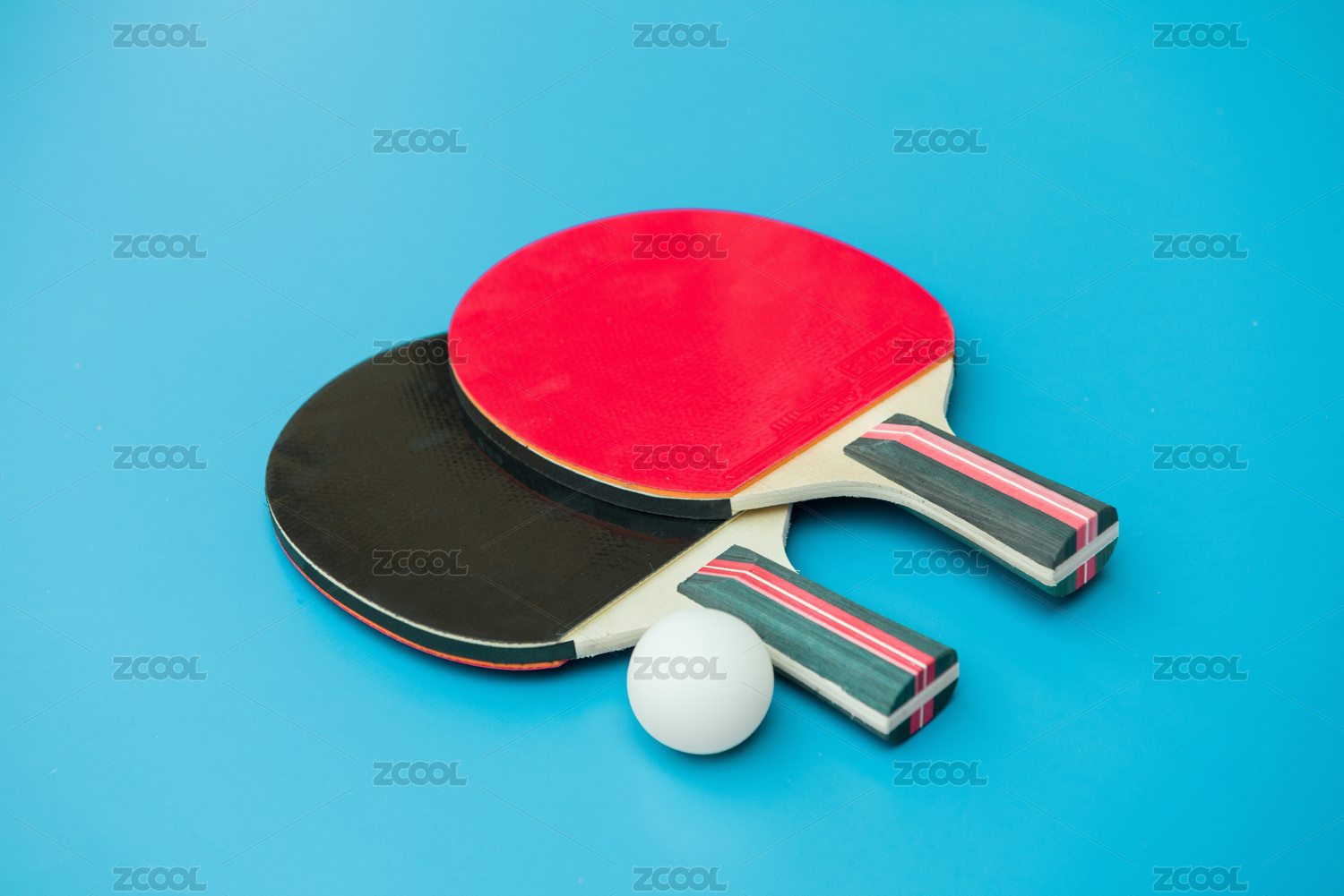 一副叠放的乒乓球拍与白色乒乓球,红色背景