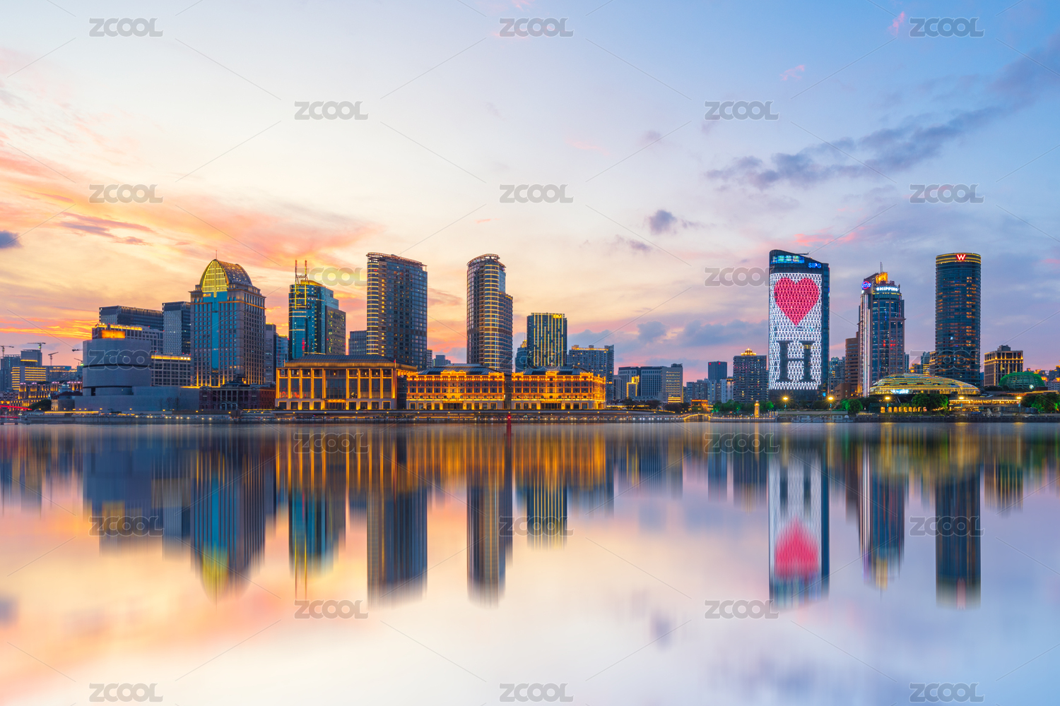 中国上海北外滩国际会客厅夜景蓝调时刻