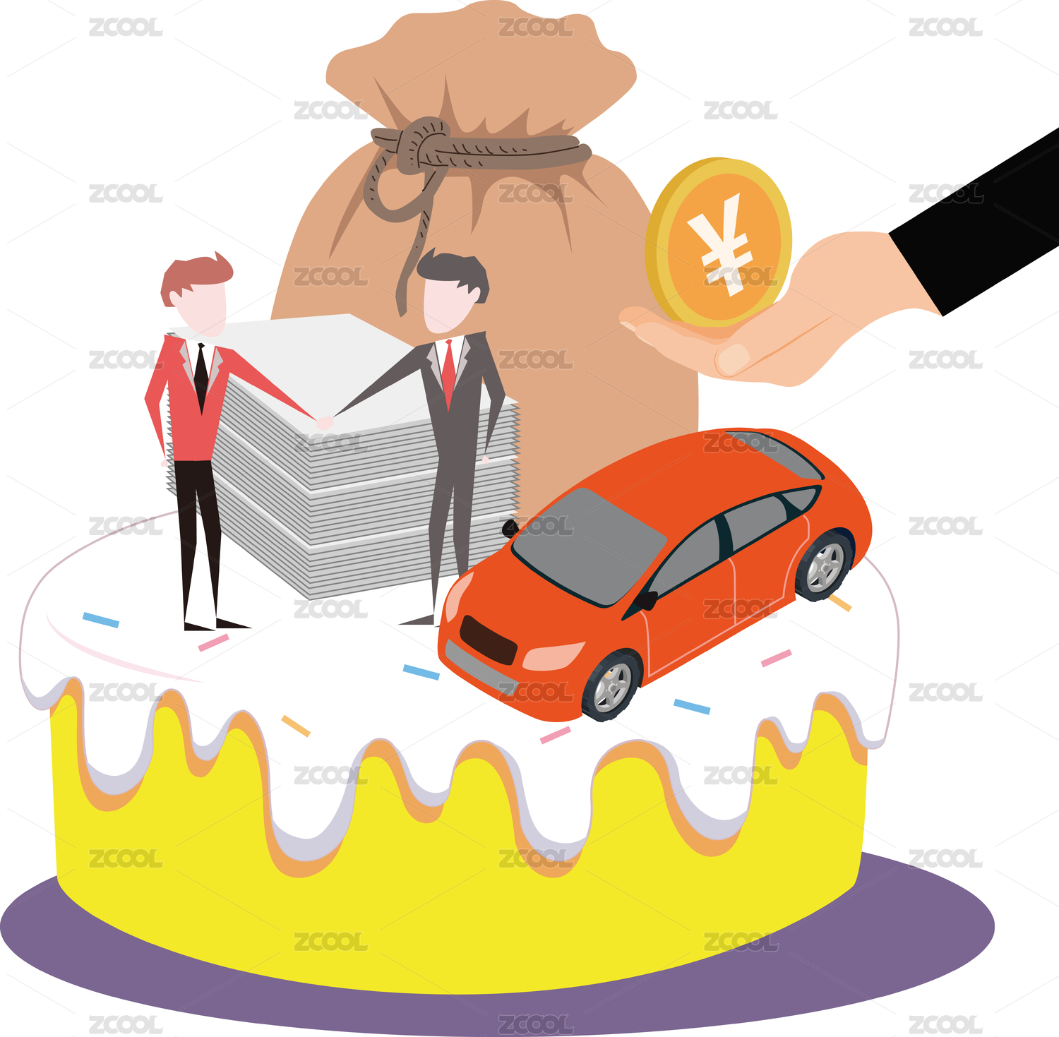 黄色背景上的打折销售小汽车,汽车降价主题