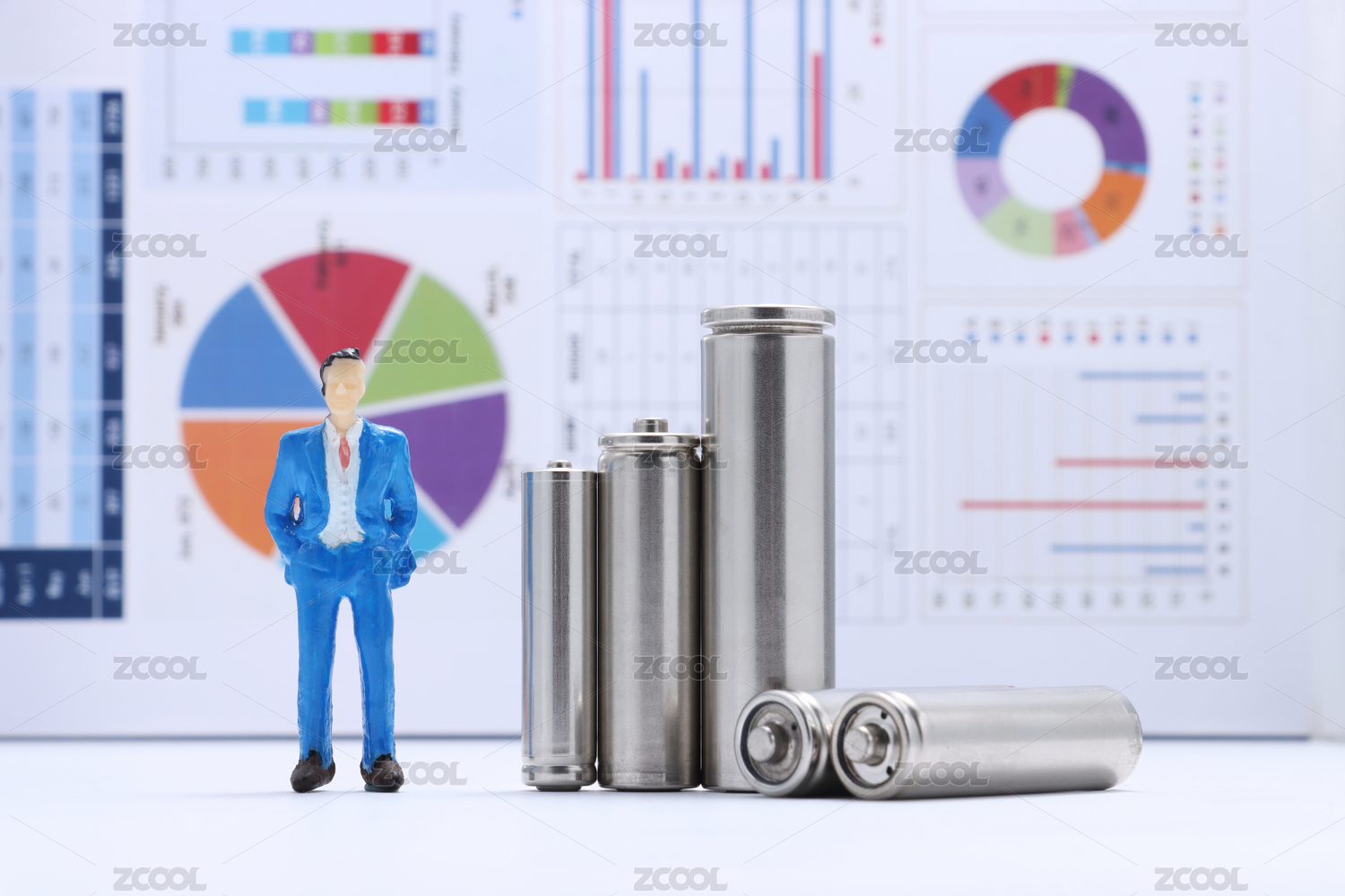 商务人士在金融文件上分析电池价格下降