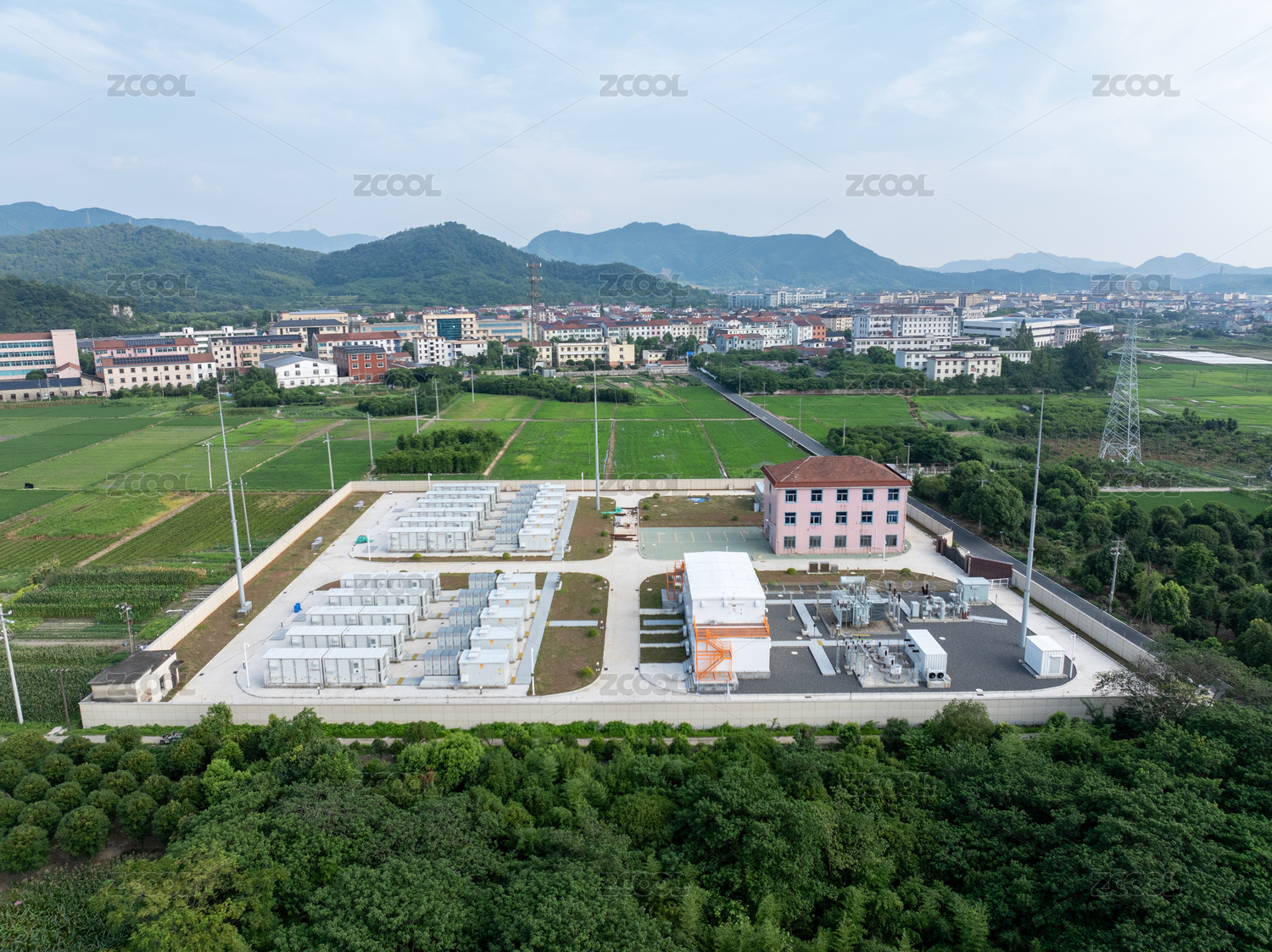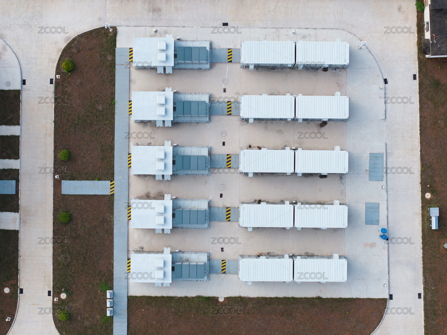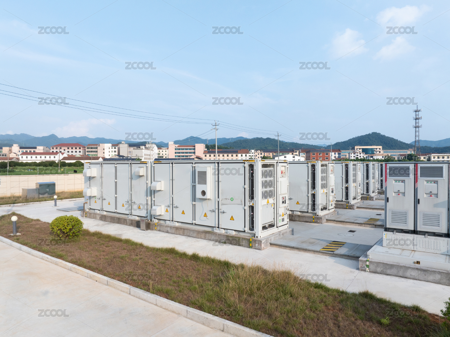现代化的光伏产业的储能站的内部设施模型