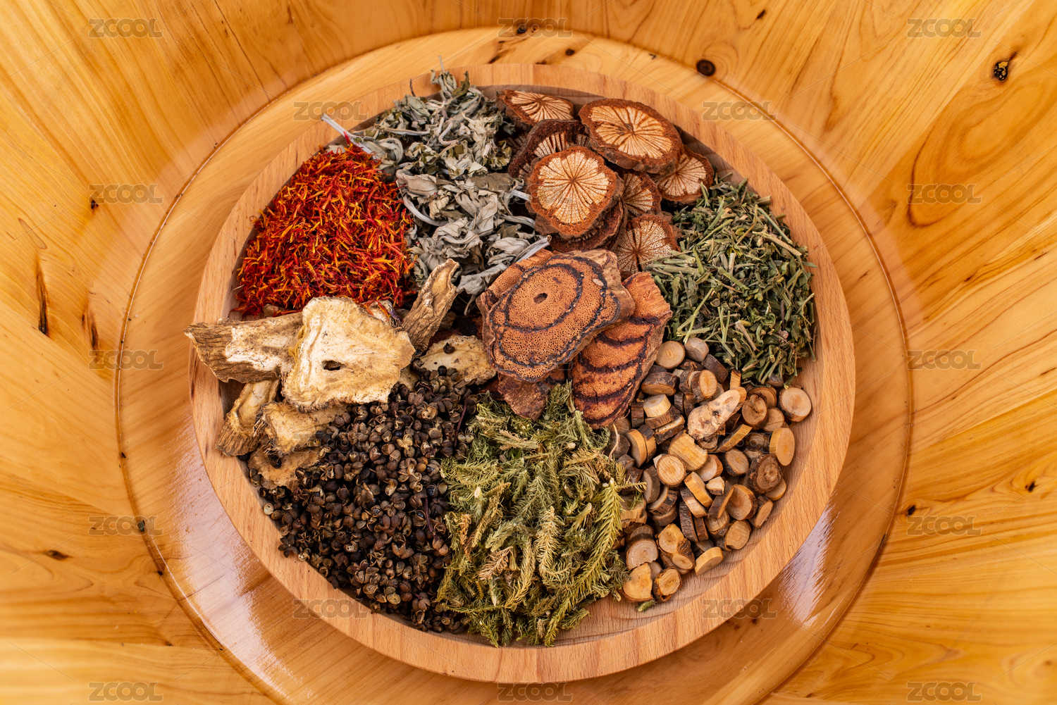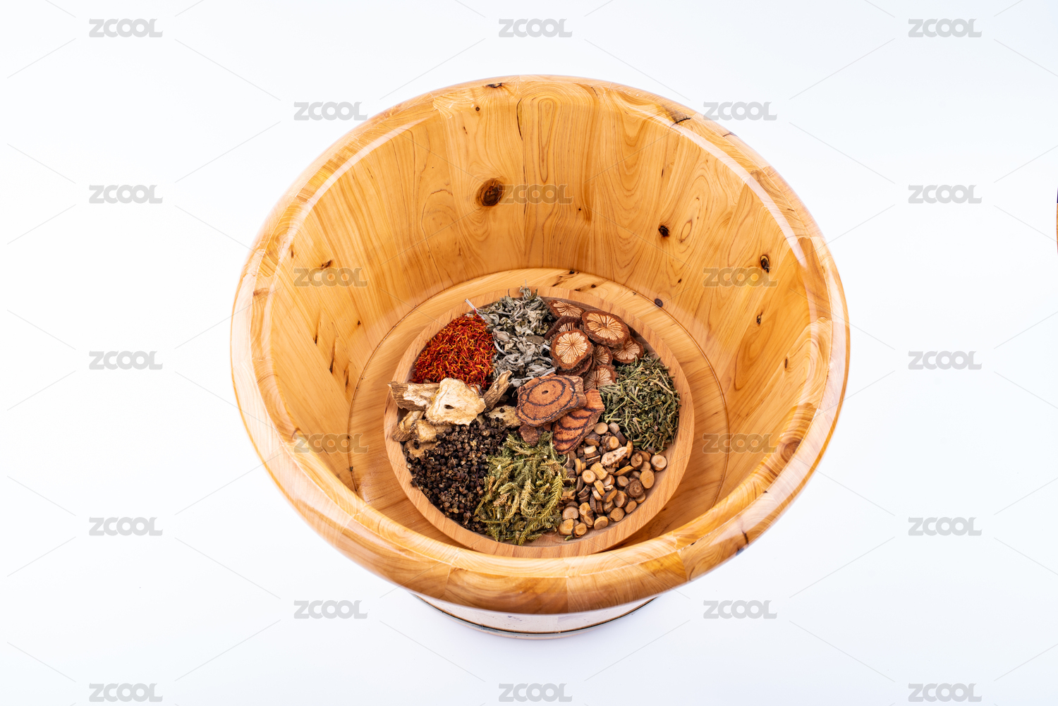 足浴桶里一碟足疗中药材