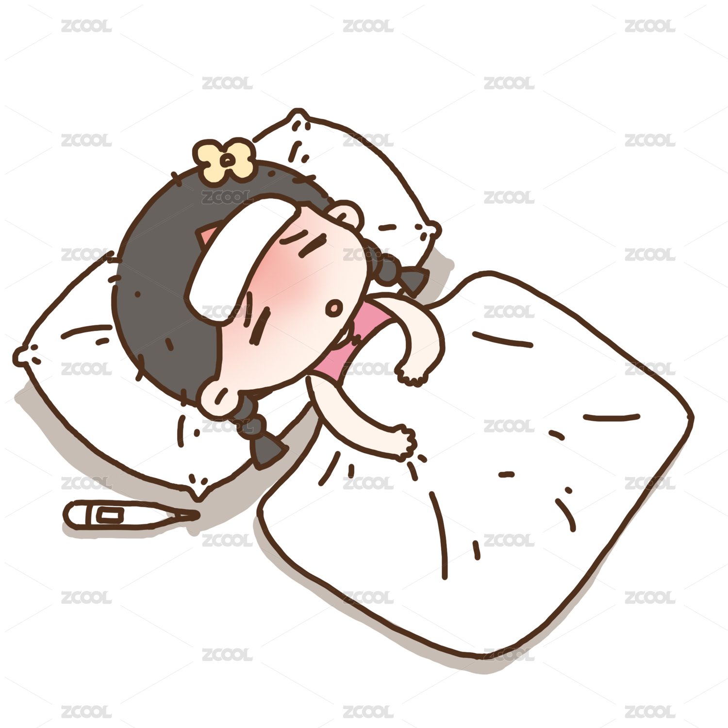 夏天宝宝生病发烧感冒头部贴着退烧贴