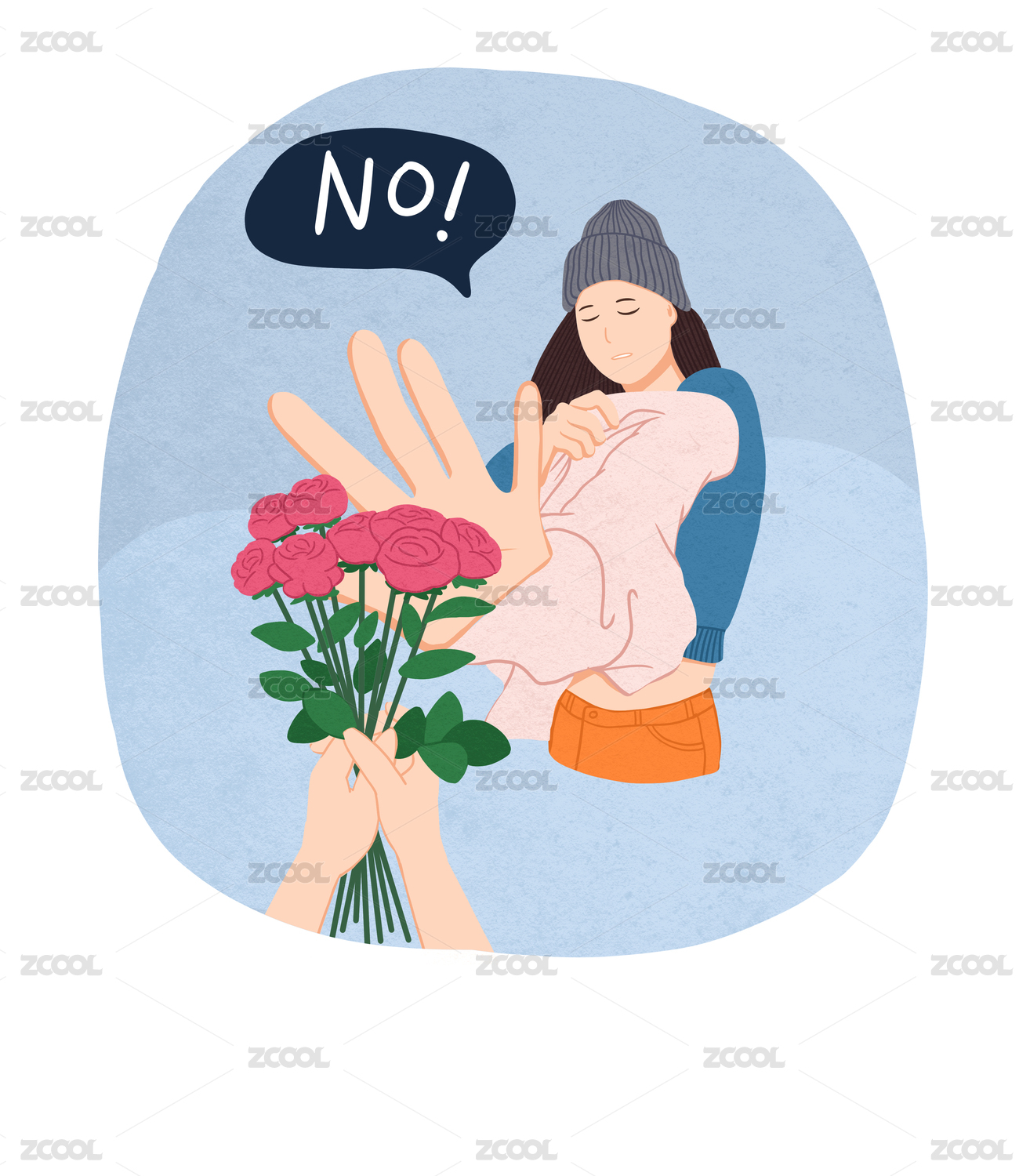 拒绝求爱的女孩手绘插画