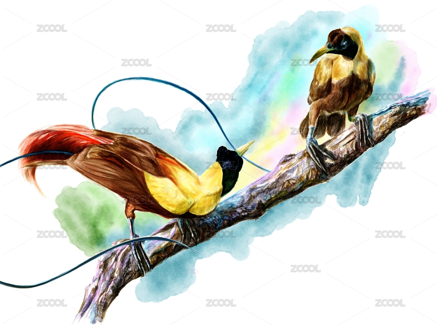 求爱的极乐鸟 Courtship birds, bird of paradise, heaven bird,