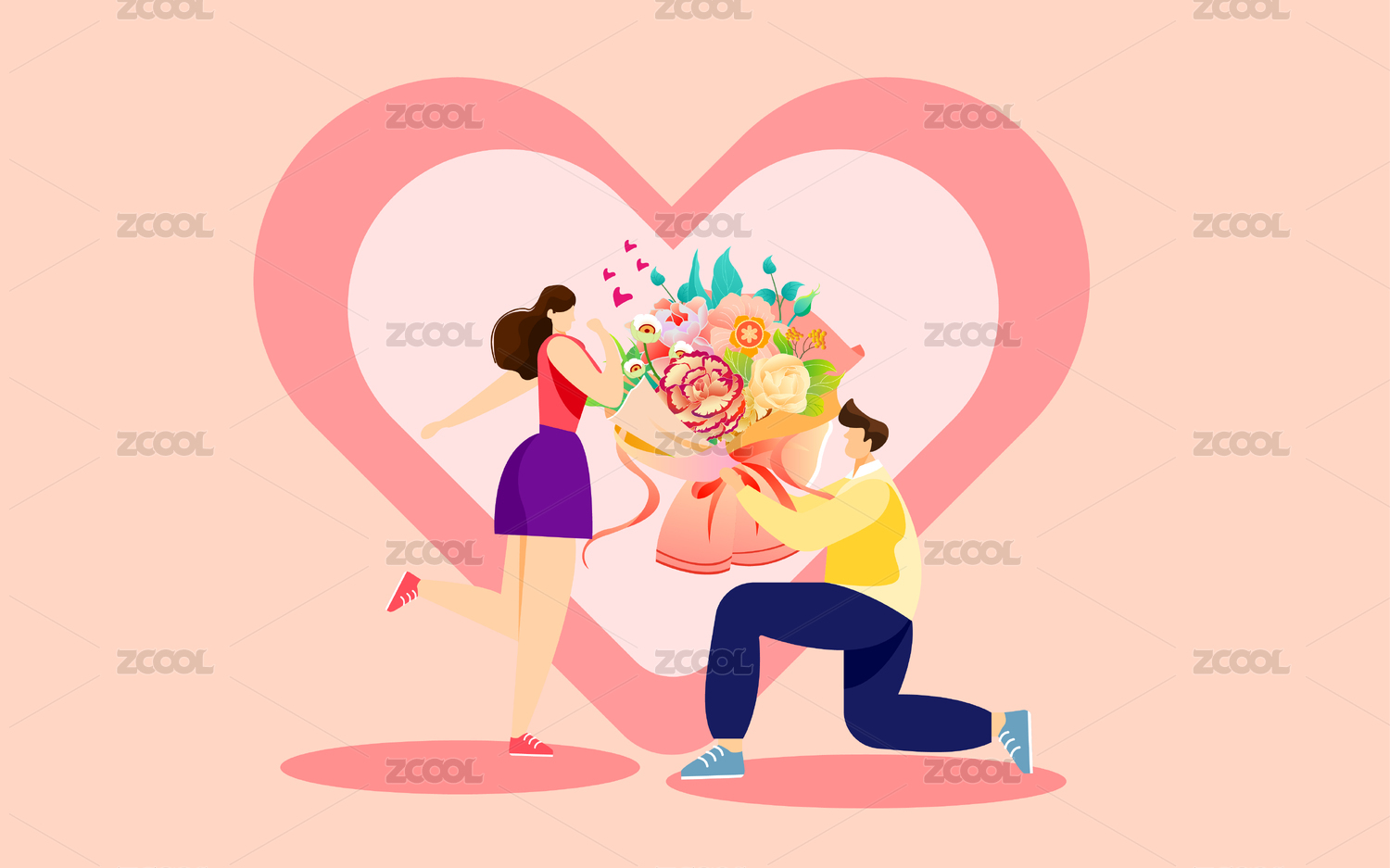 情人节求爱插画