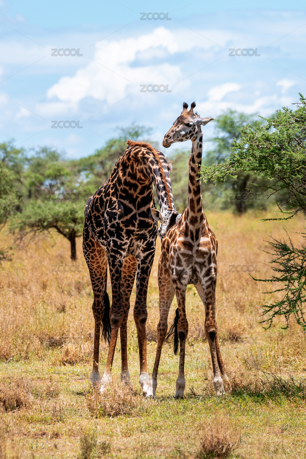 非洲草原上两只求爱的长颈鹿