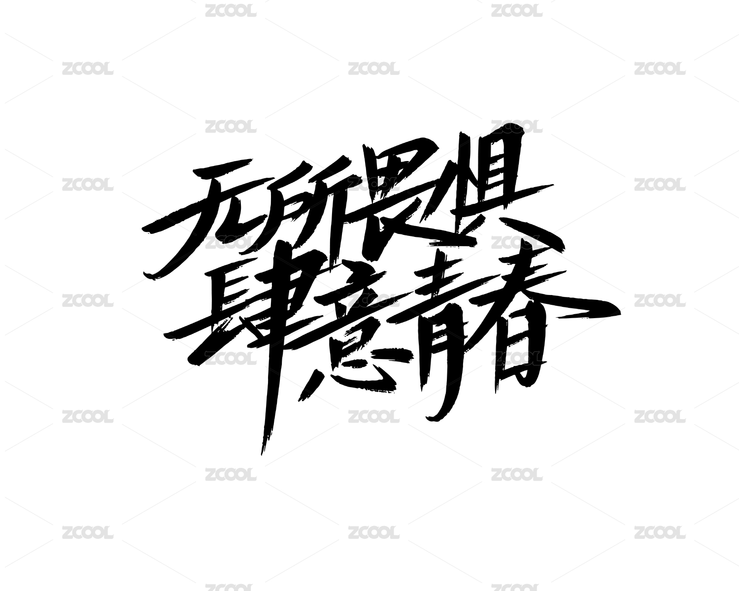 中国风书法秀丽笔手写字无所畏惧,肆意青春