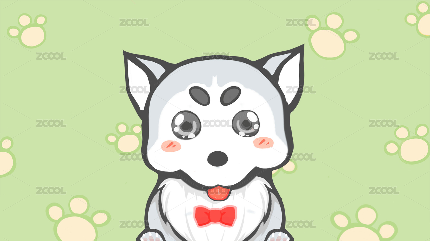 A Husky puppy. It can accompany you. Bring you healing and comfort. This animal illustration is Aesthetic Card Ventilation illustration.Husky is a lovely animal.