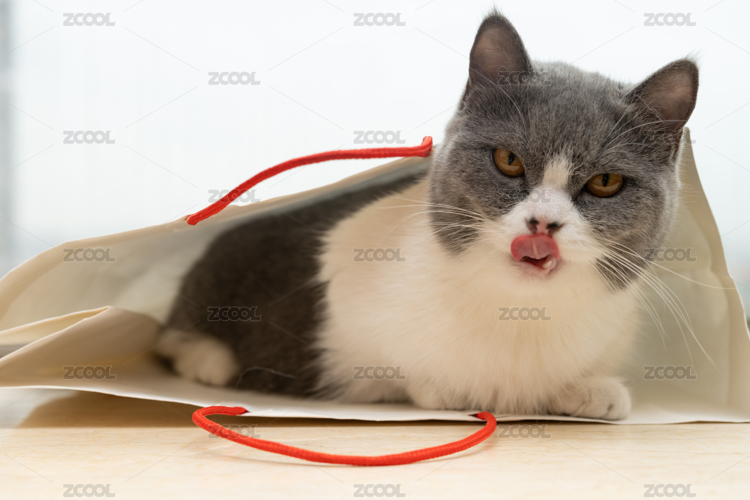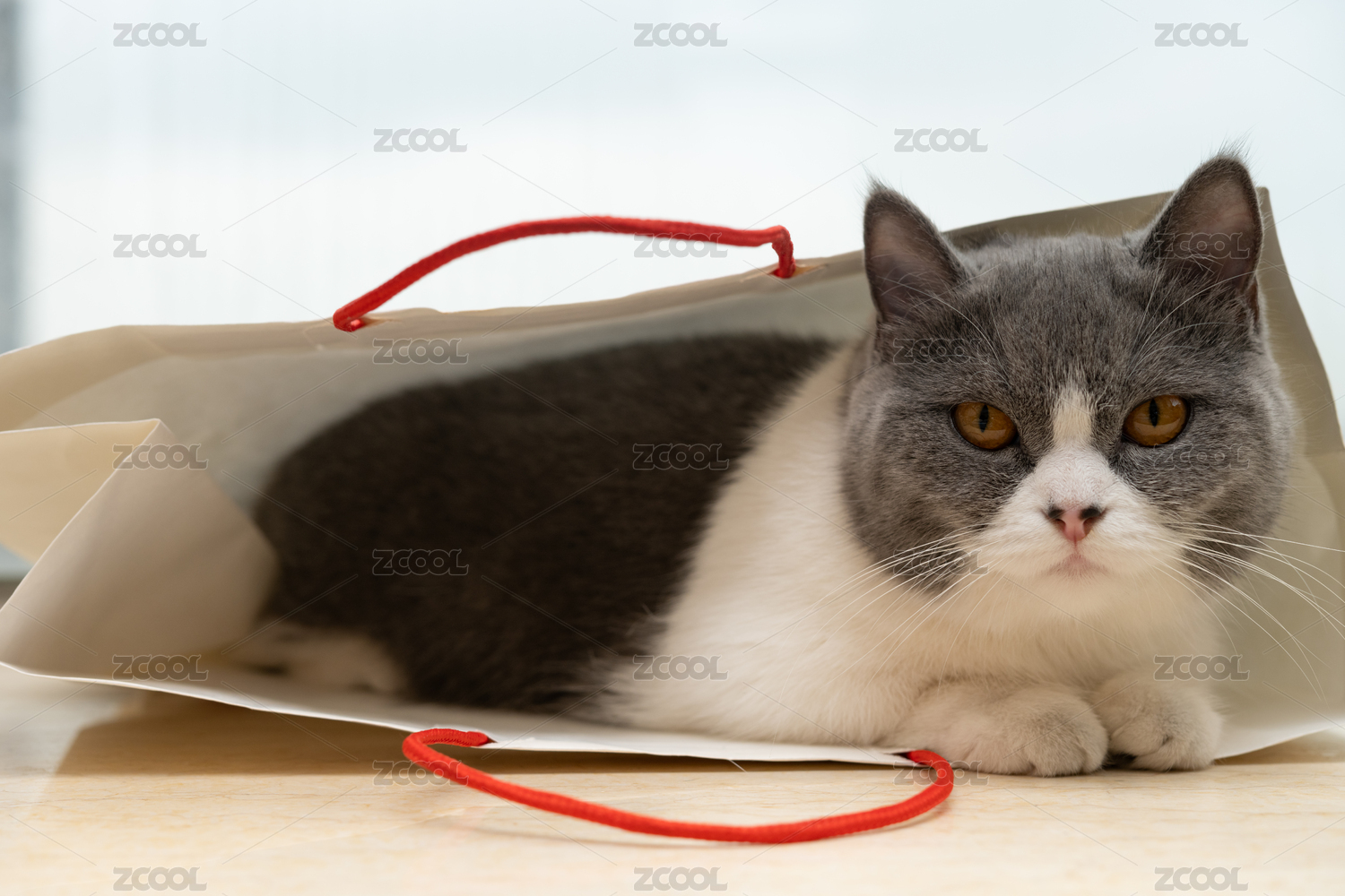 英短蓝白躲在购物袋里休息