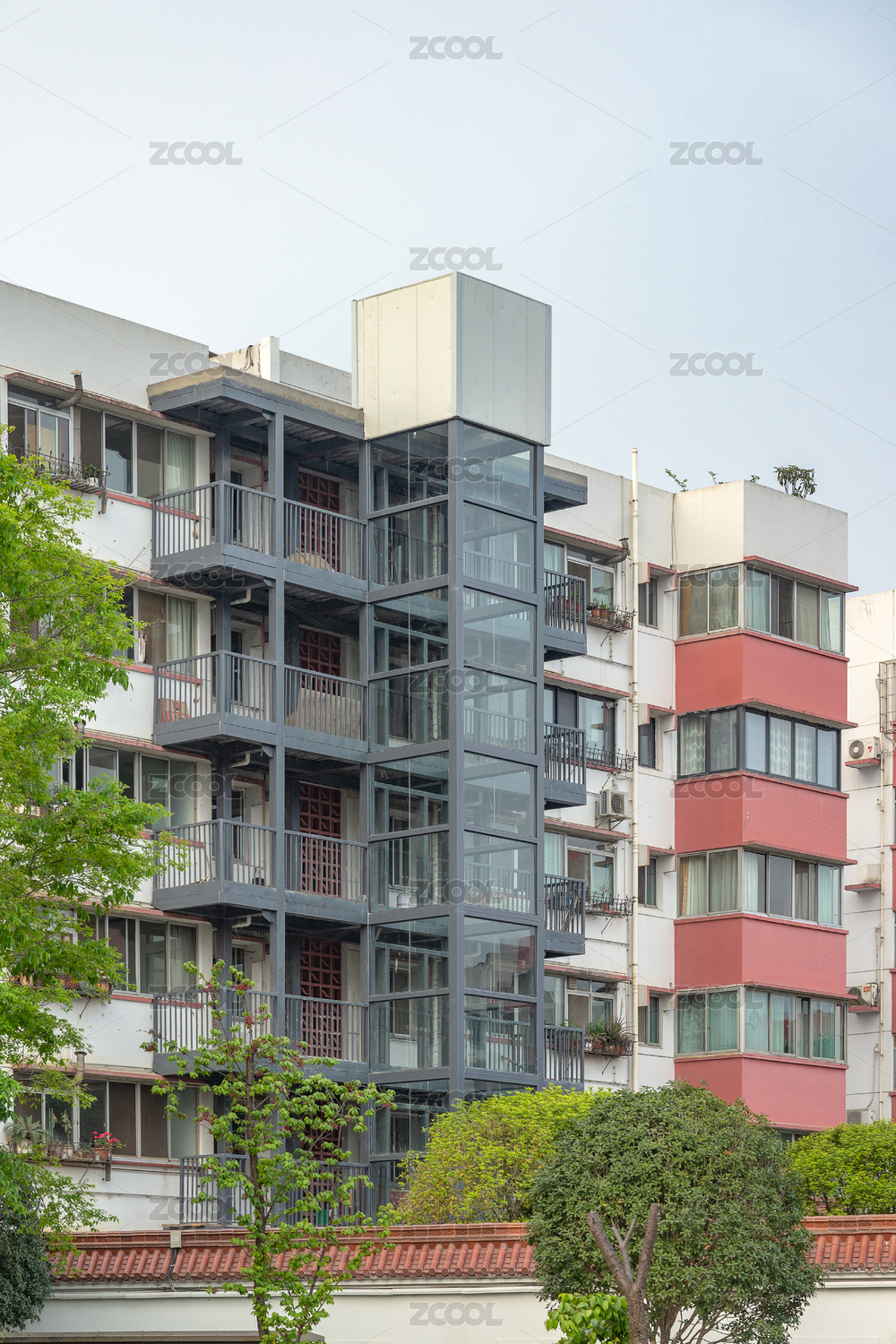 老旧居民楼加装的外挂电梯