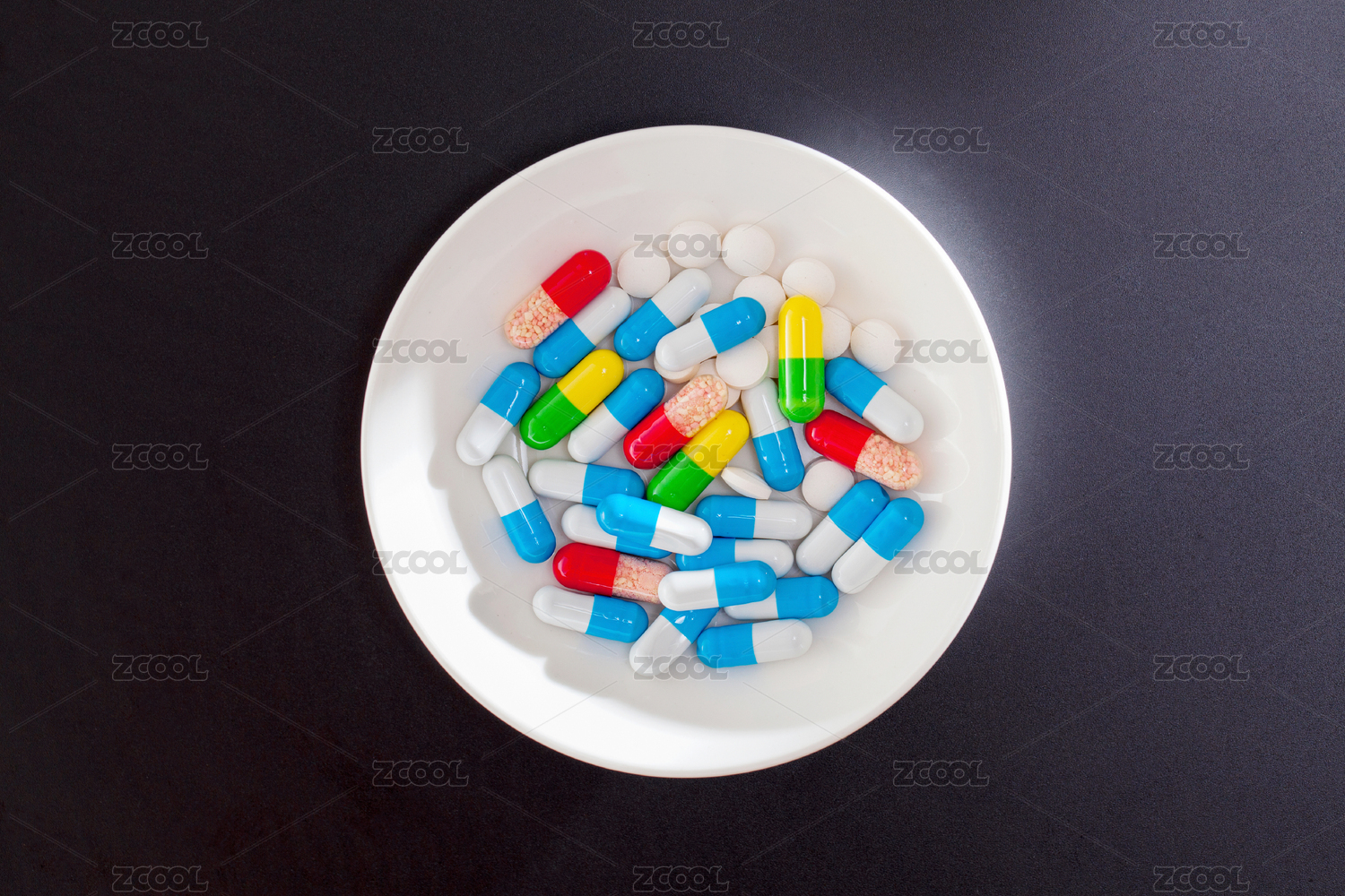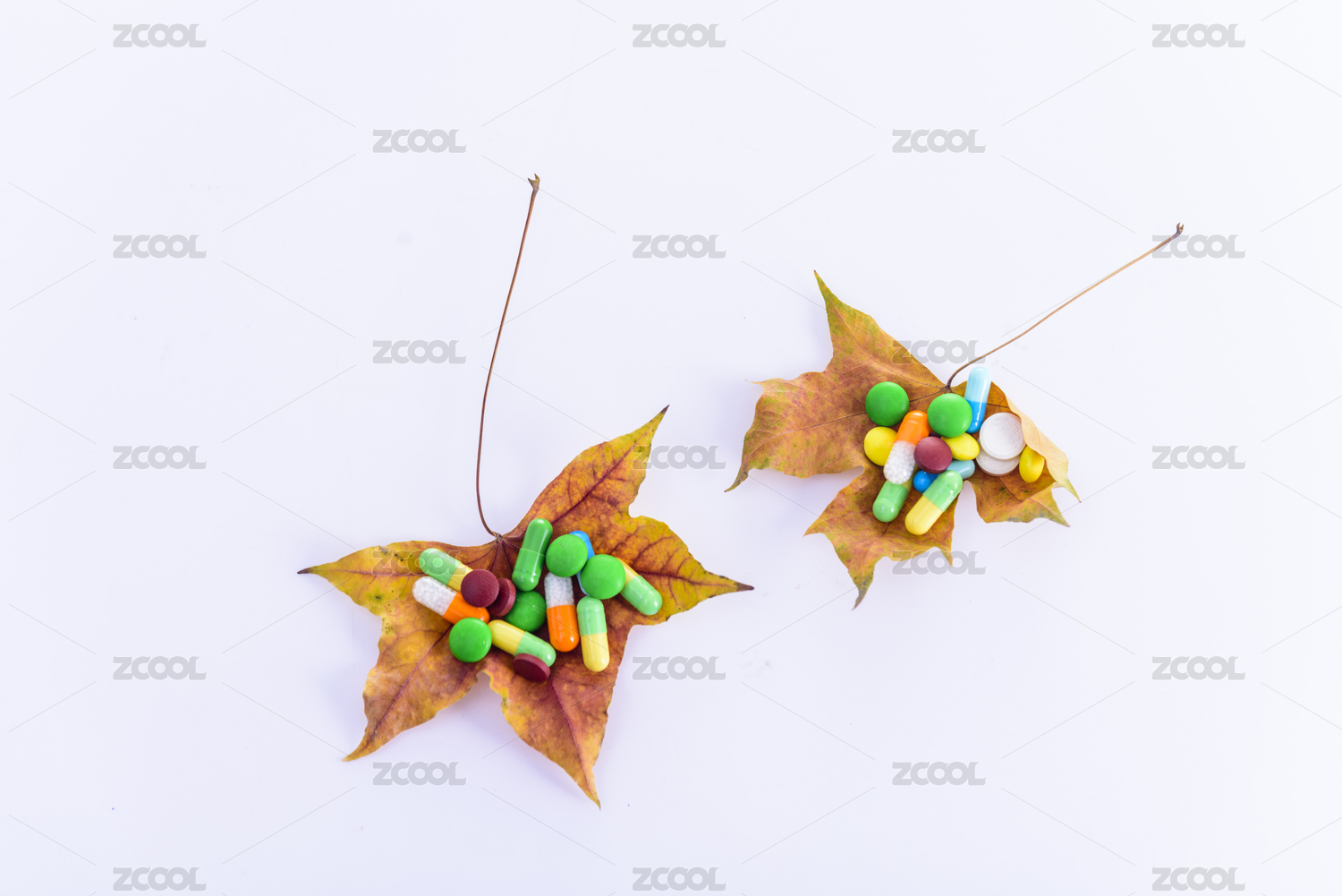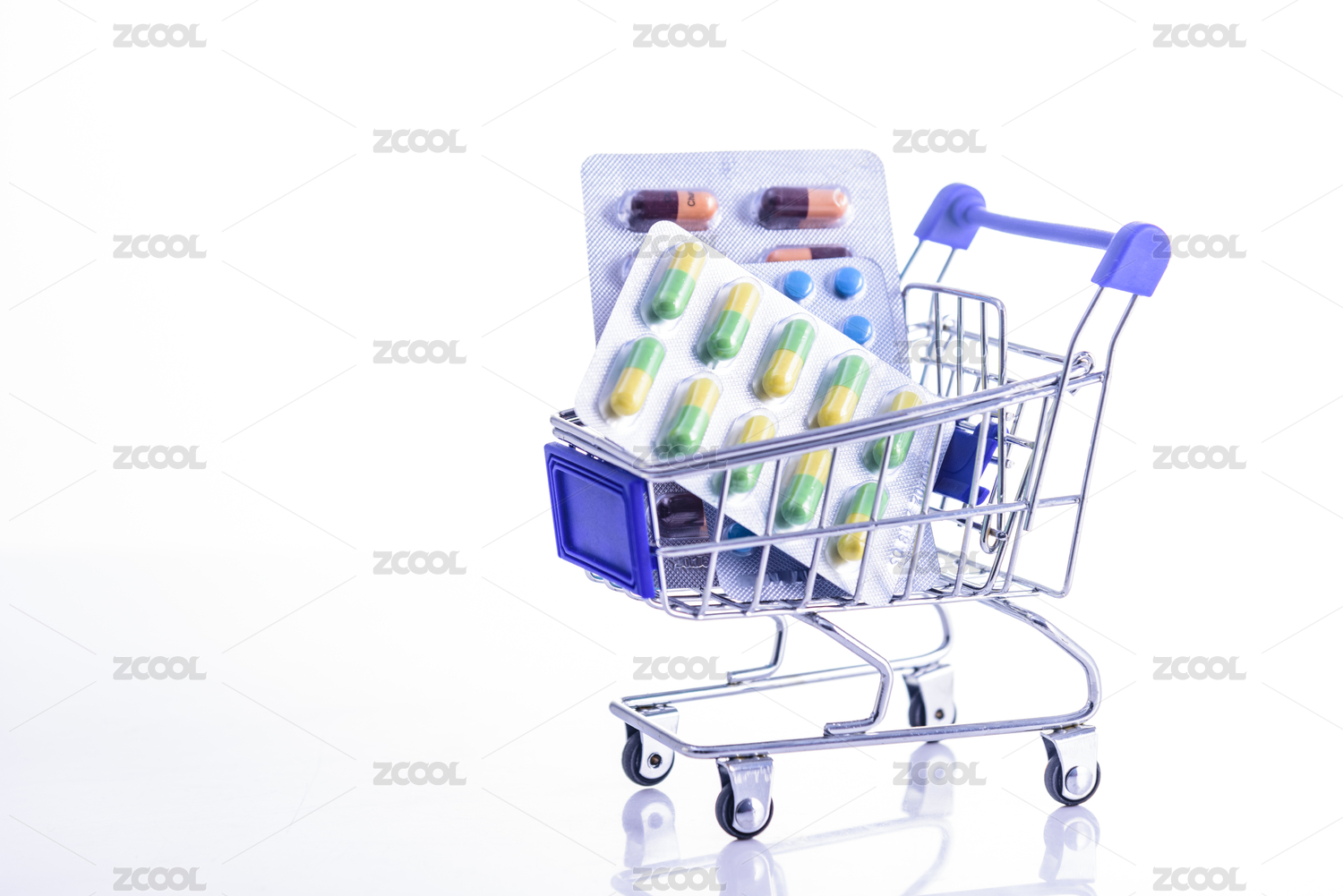 纯白色背景下的多种药品
