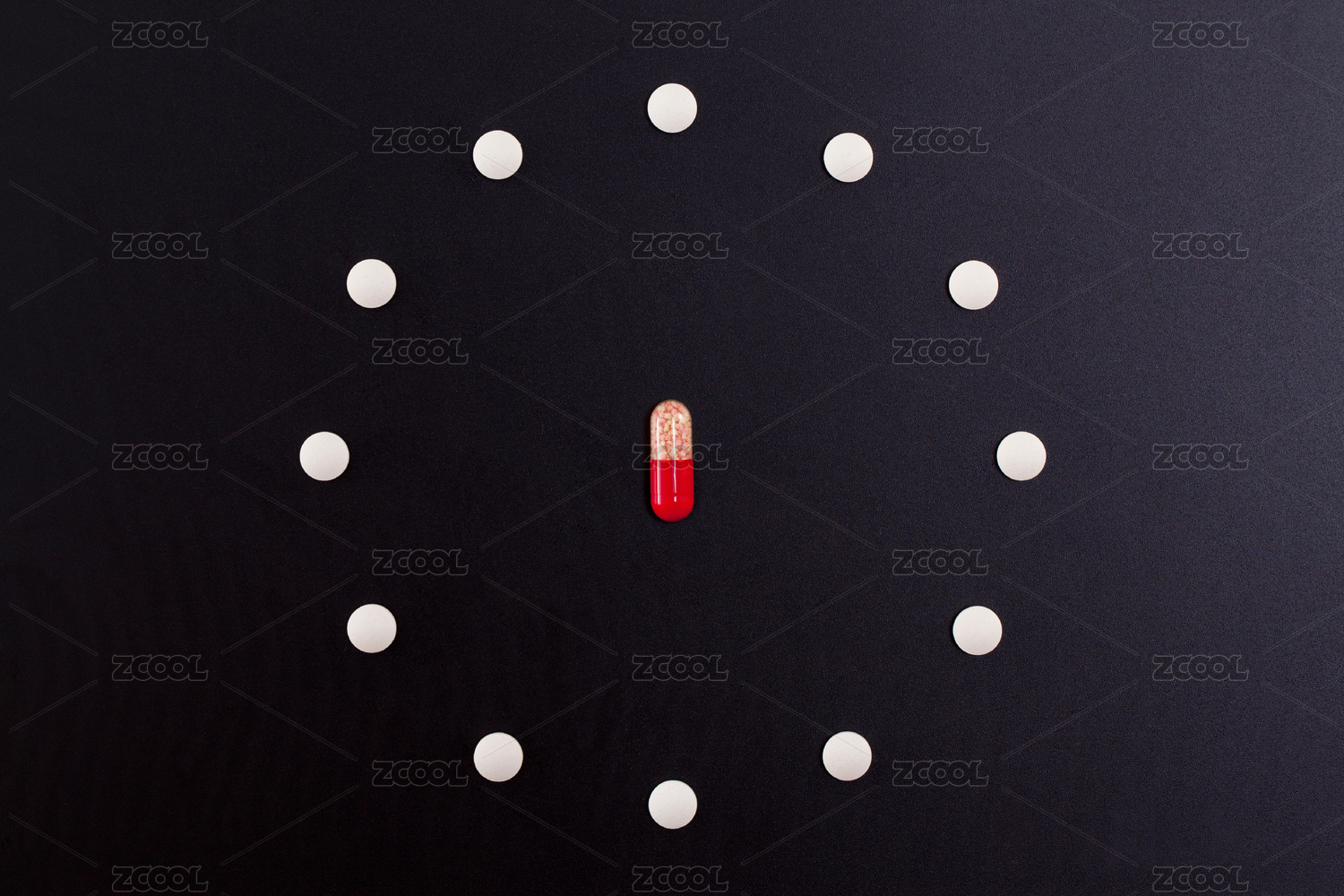 排列在黑色背景上的白色药品