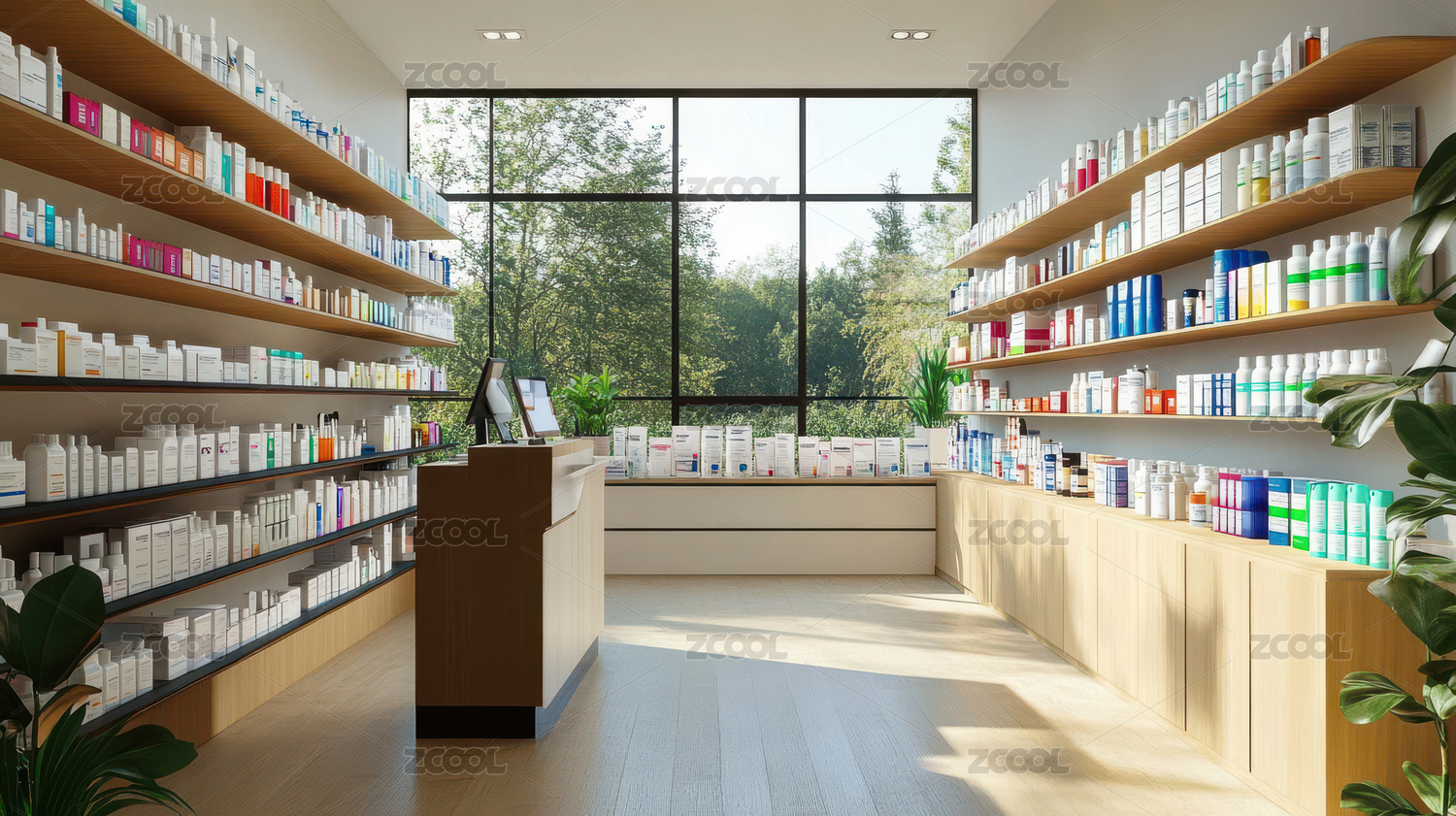 摆满药品的现代化药房