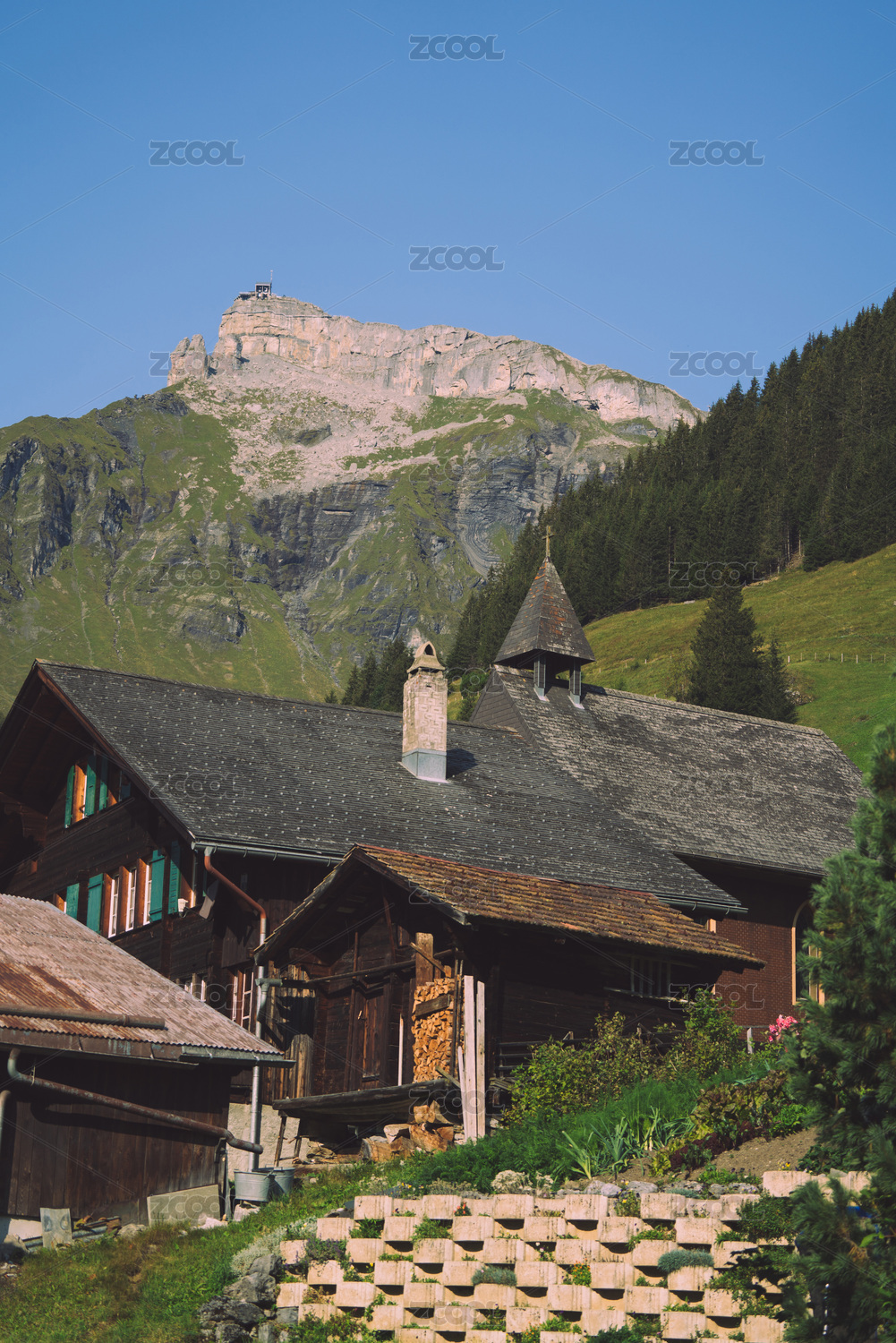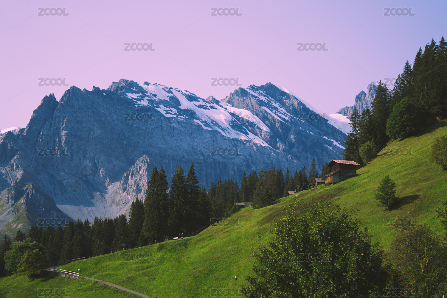 瑞士阿尔卑斯山脉美丽的森林与草地