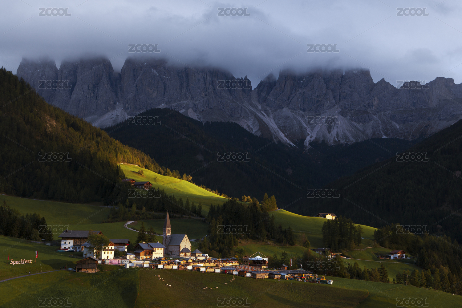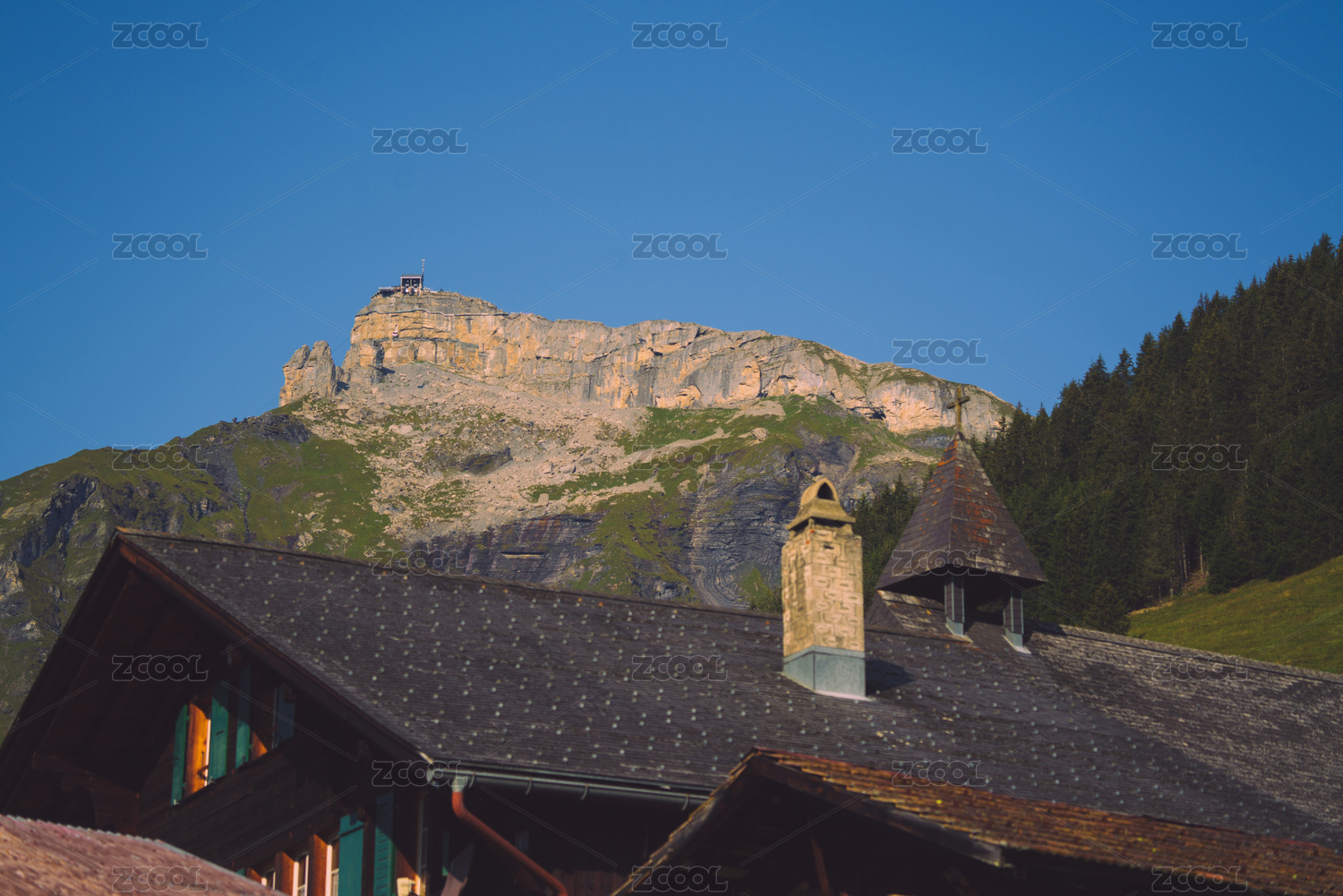 瑞士阿尔卑斯山脉脚下的森林与小镇