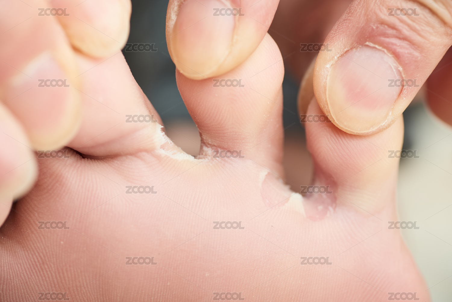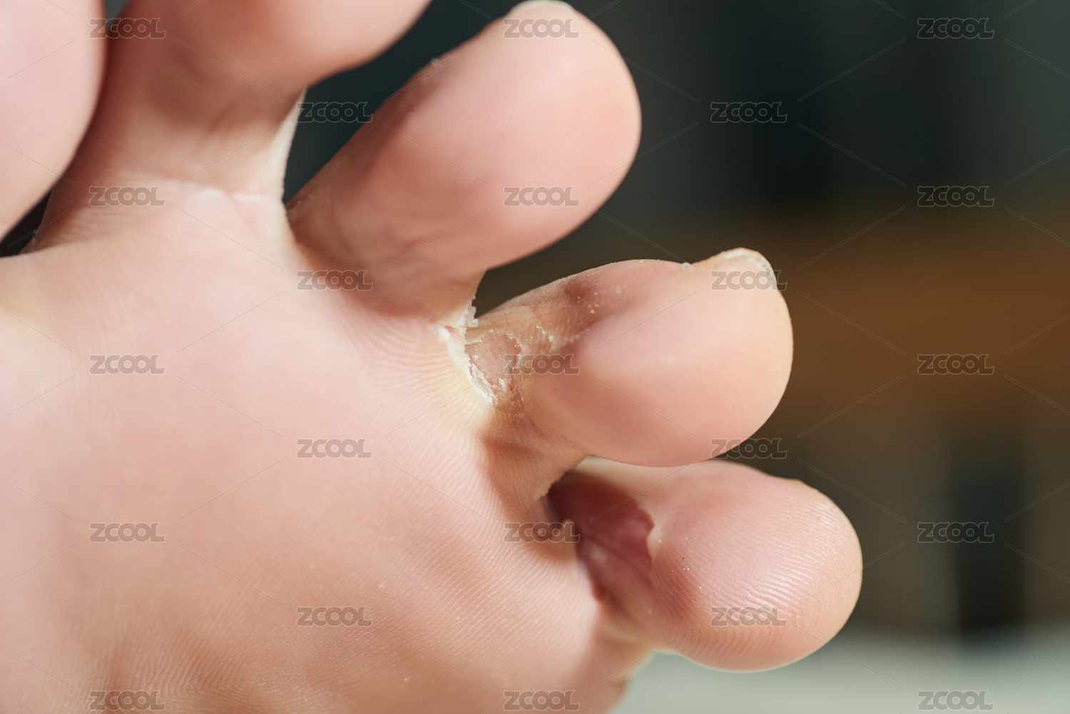 被真菌感染导致糜烂的趾腹和趾侧