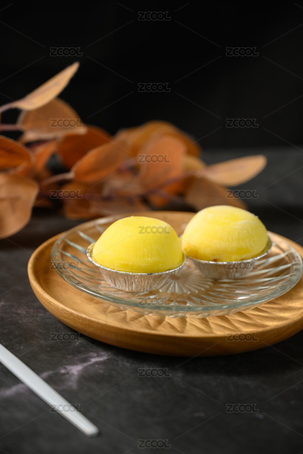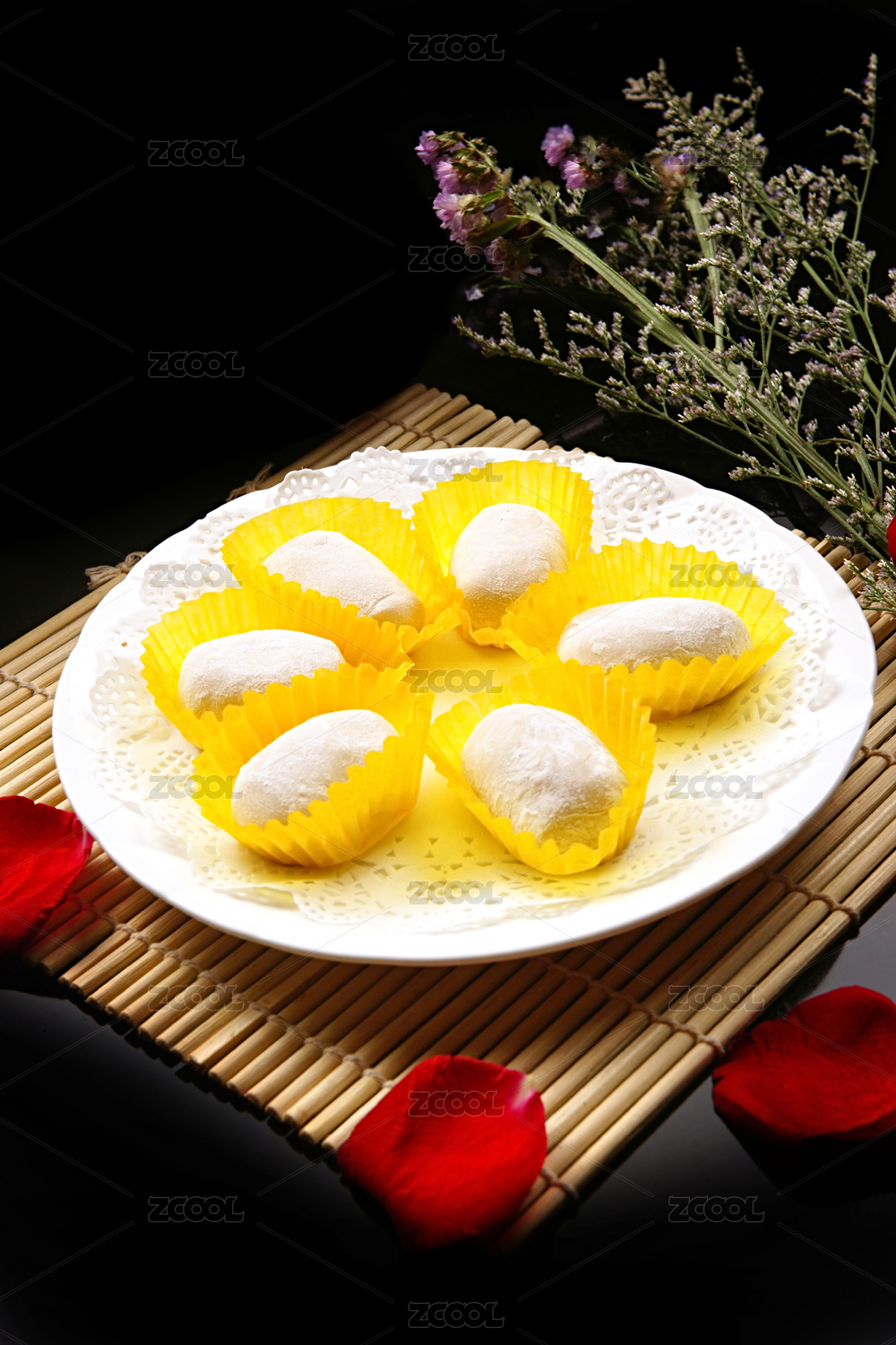 黑色背景美味下午茶雪媚娘
