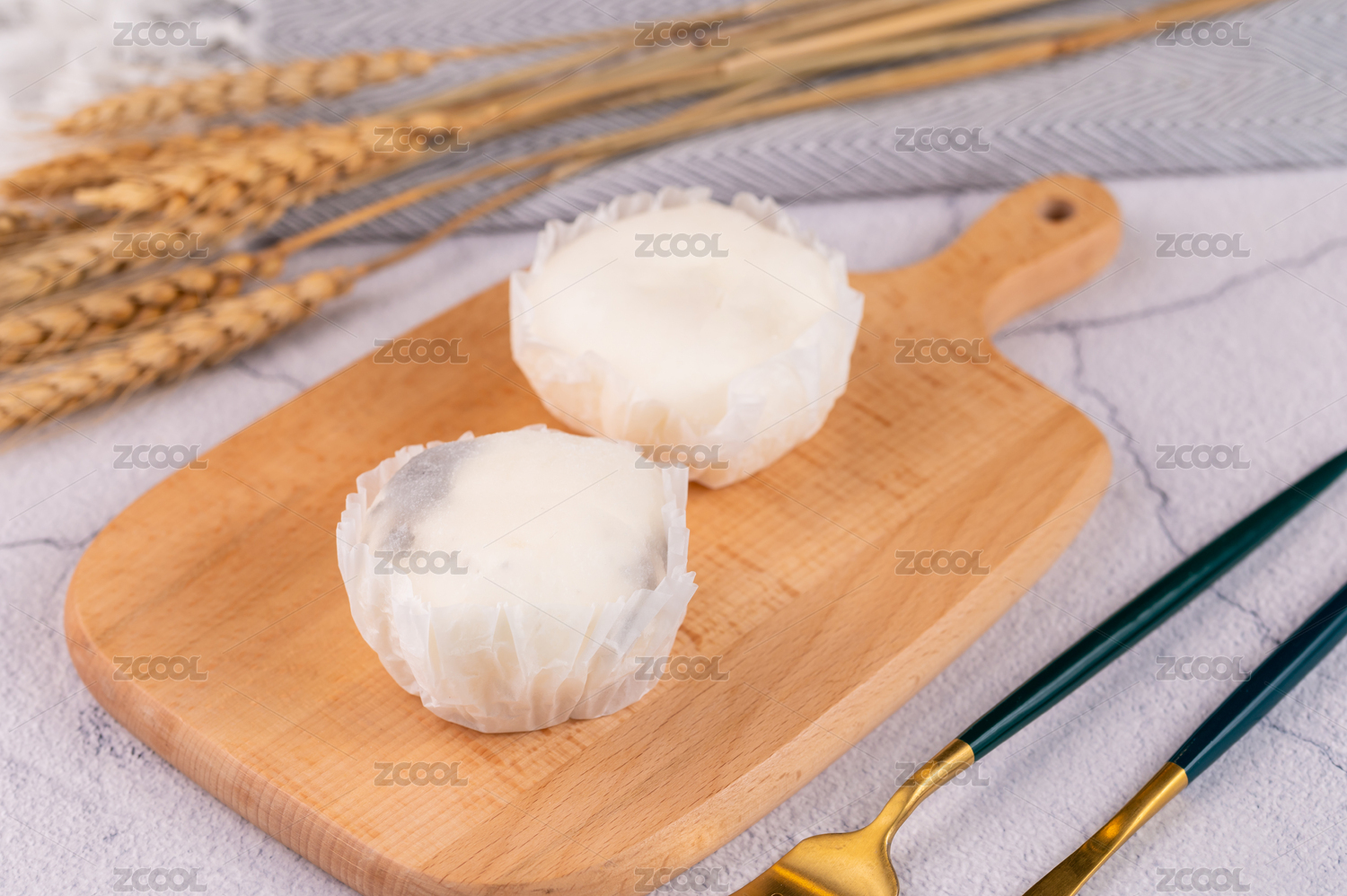 木托盘上的雪媚娘