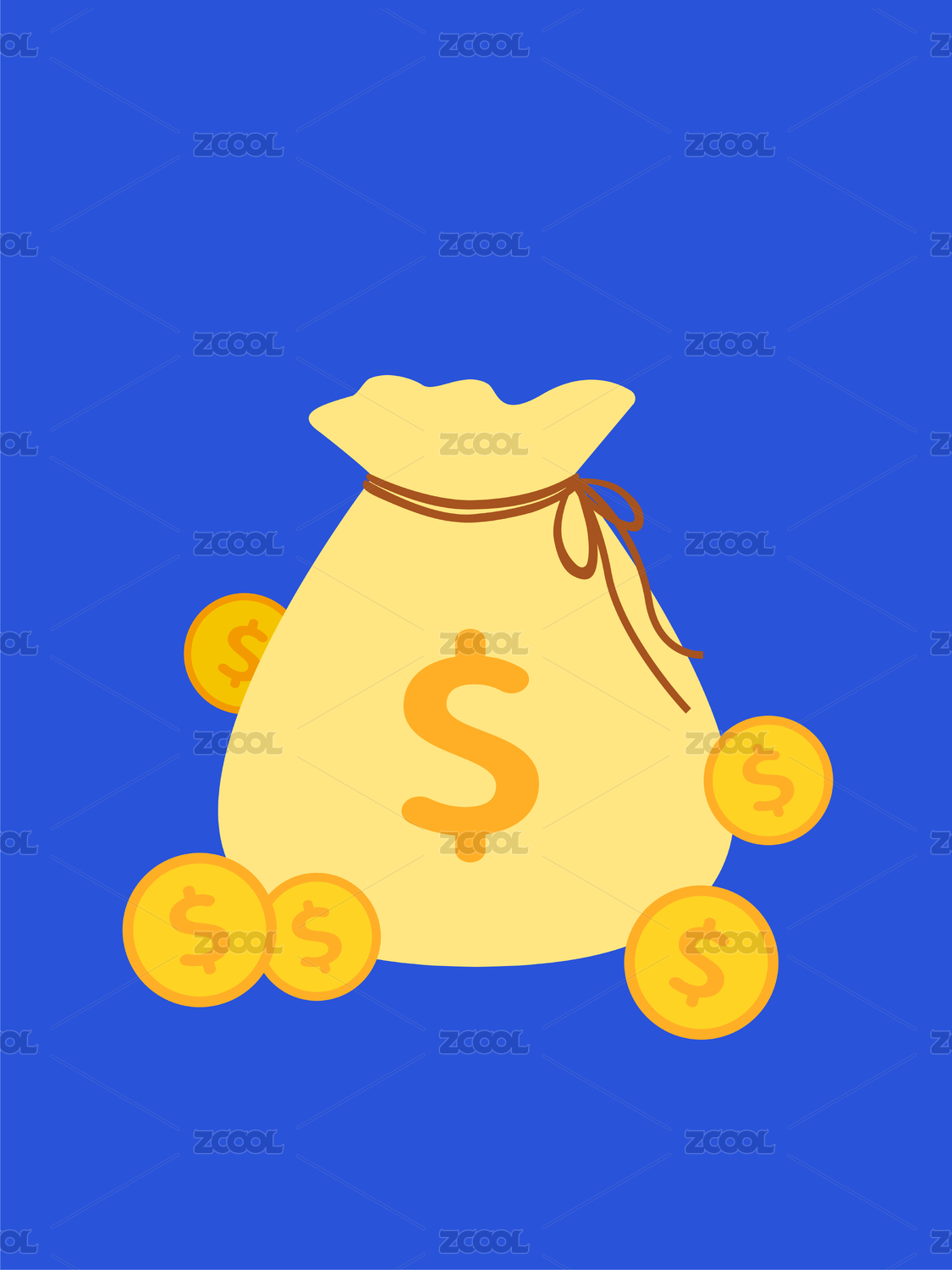 美元金币钱袋子矢量图标商业金融插画
