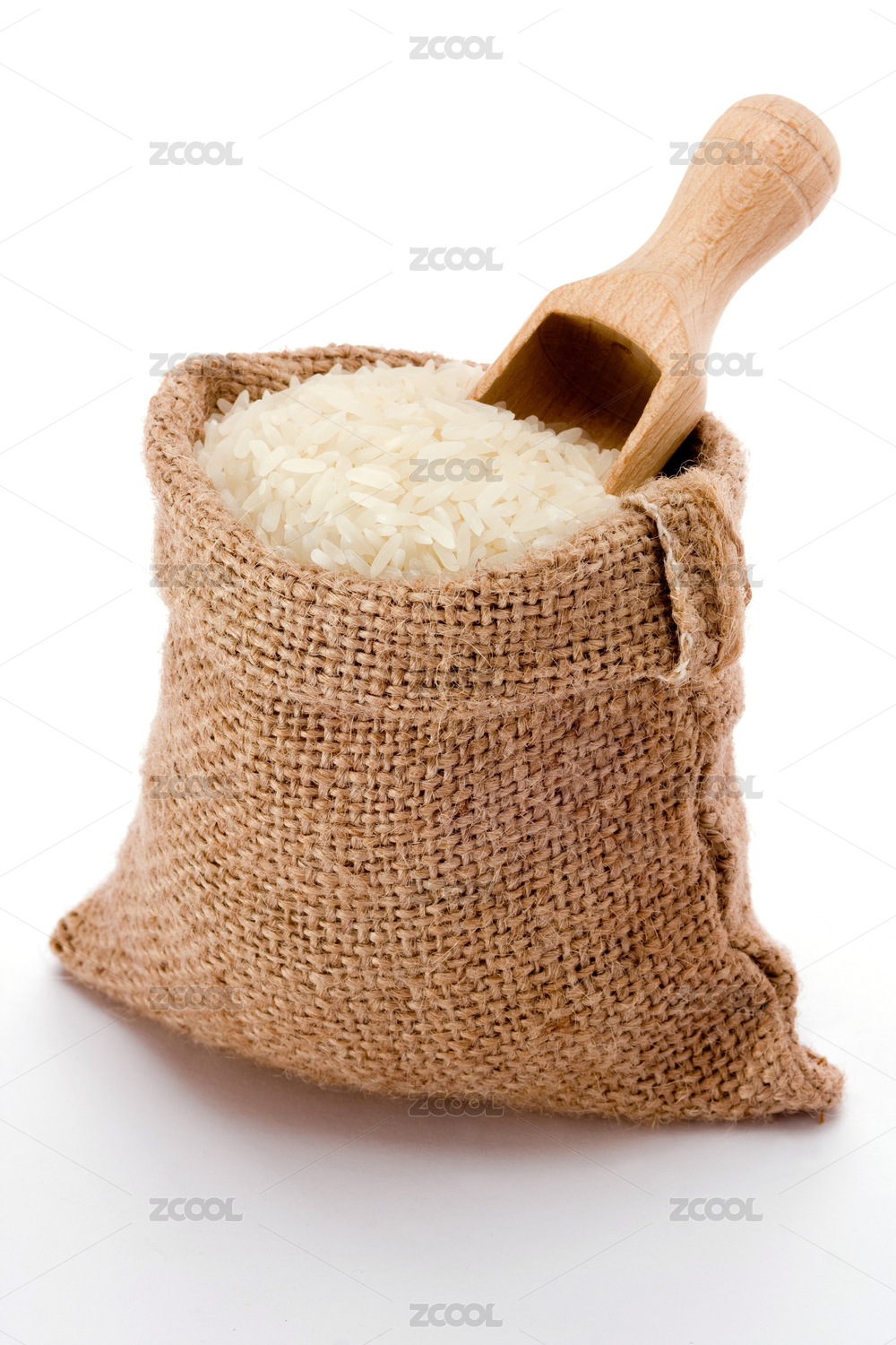 白色背景下一麻袋子白色的大米