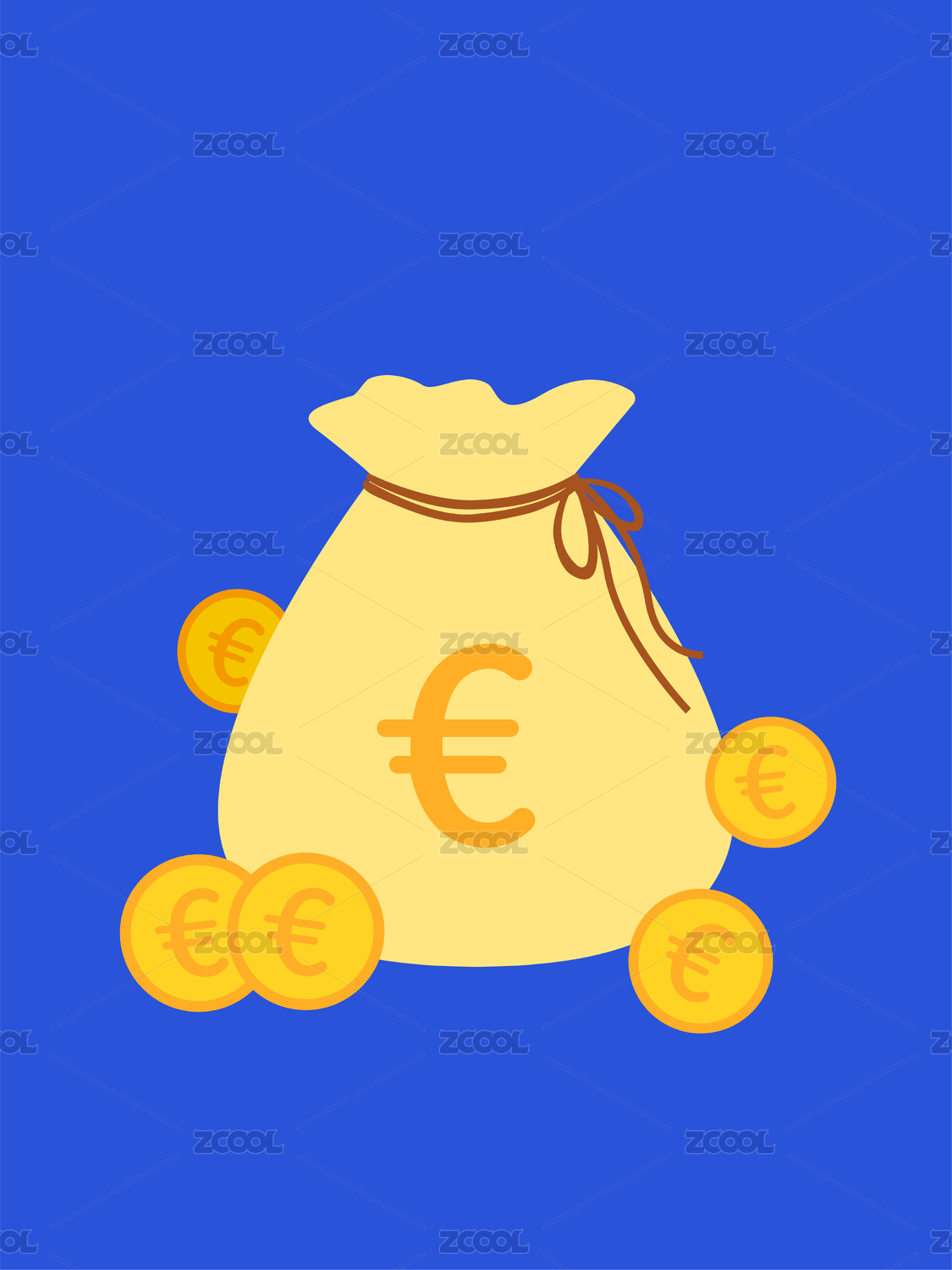 欧元金币钱袋子矢量图标商业金融矢量插画