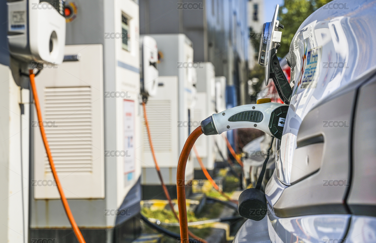 绿色新能源汽车正在充电中