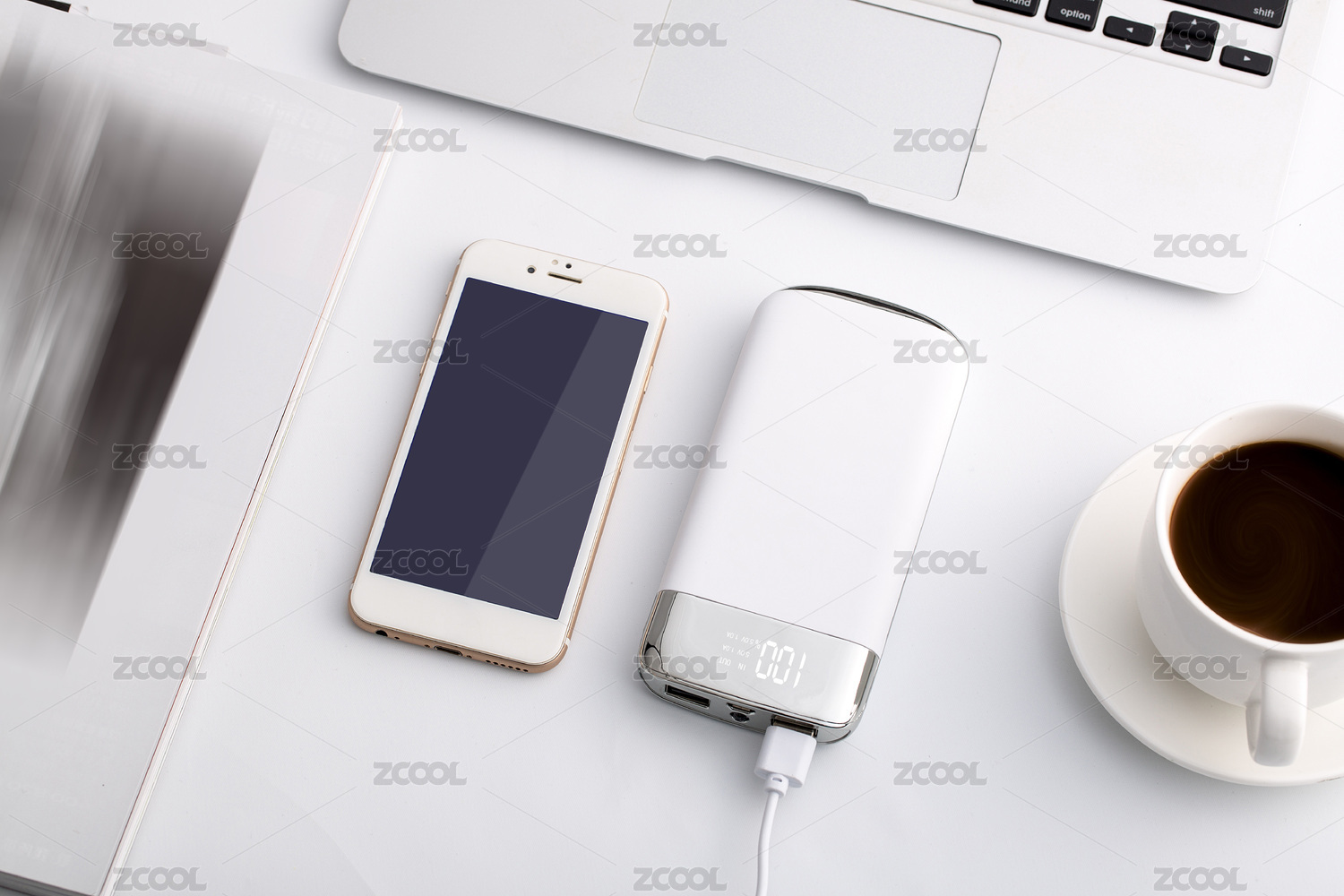 办公桌上的手机和充电器