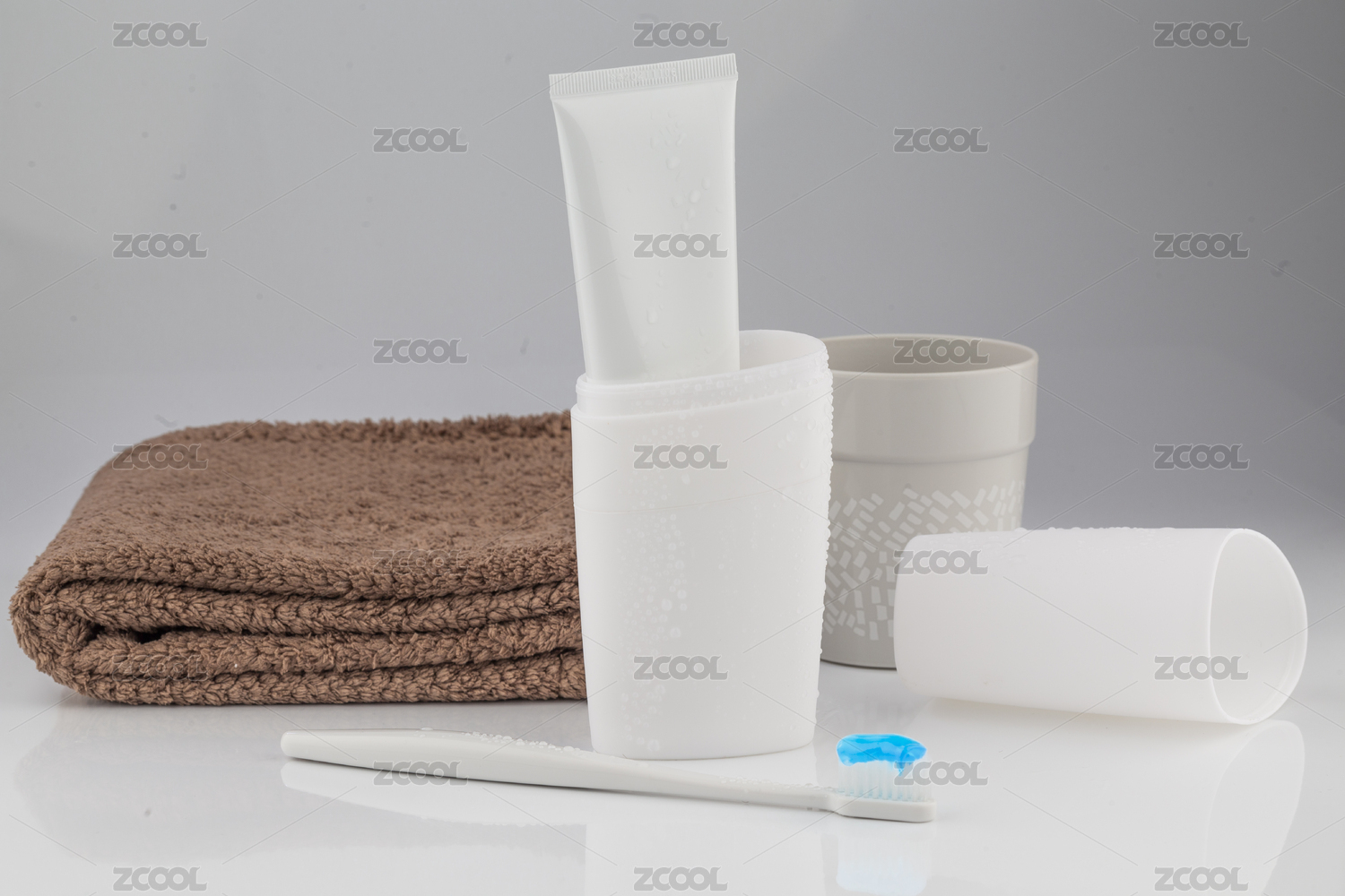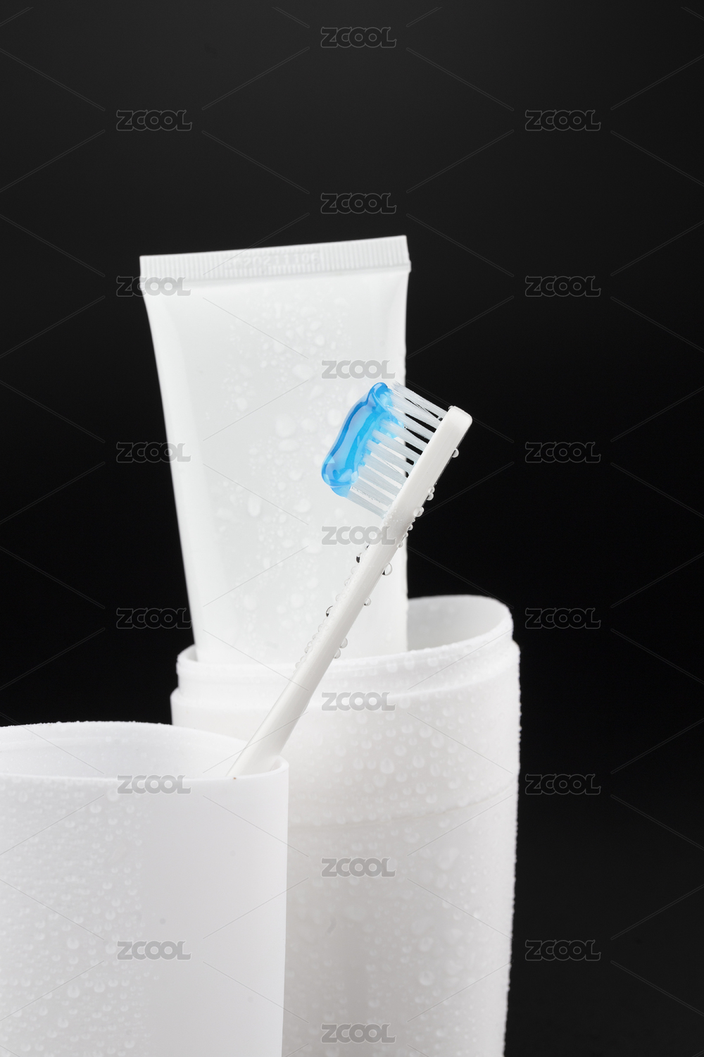 白色的牙膏和浅蓝色的牙刷矢量插画