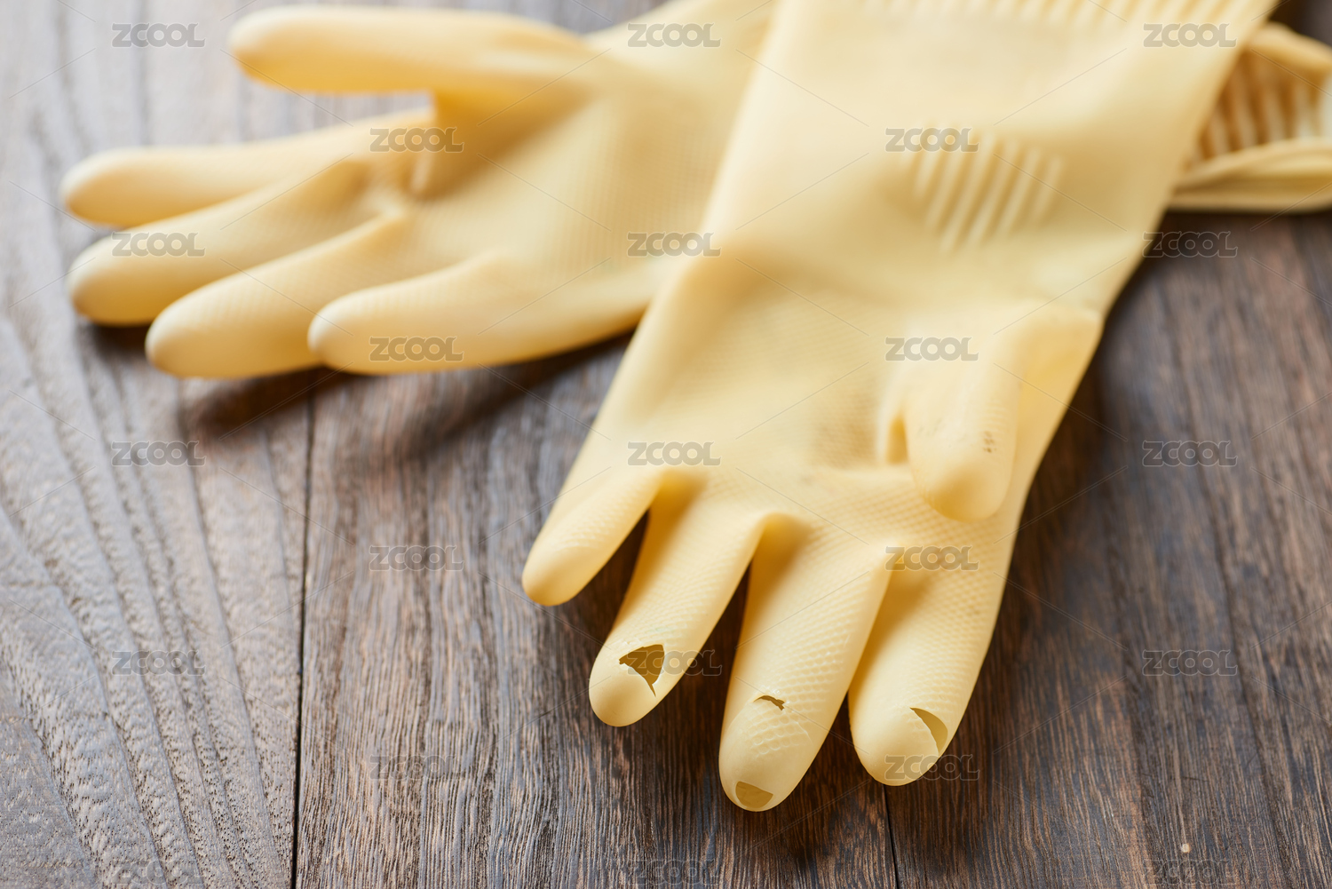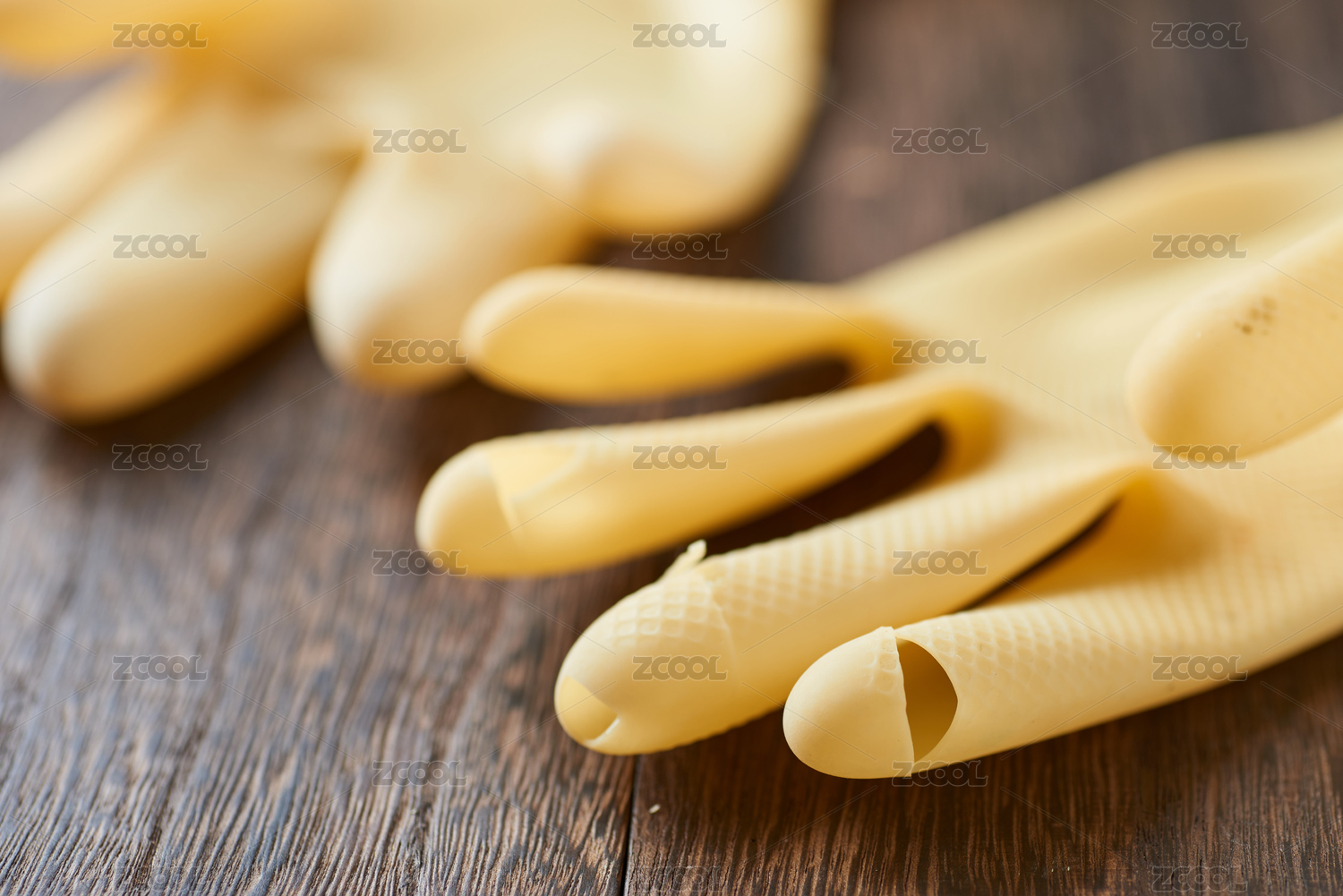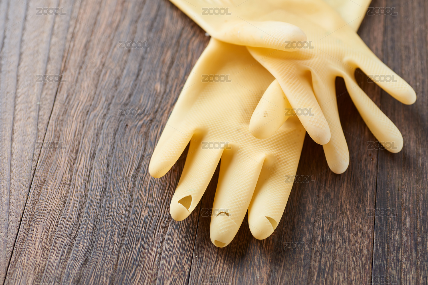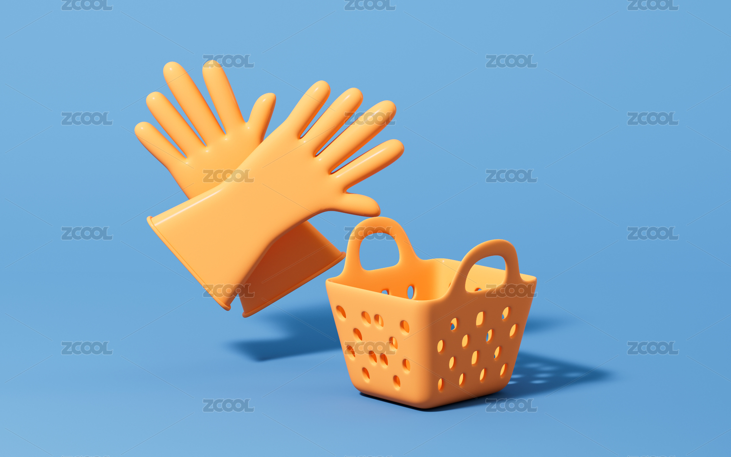 清洁工具百洁布橡胶手套盘子特写白色背景