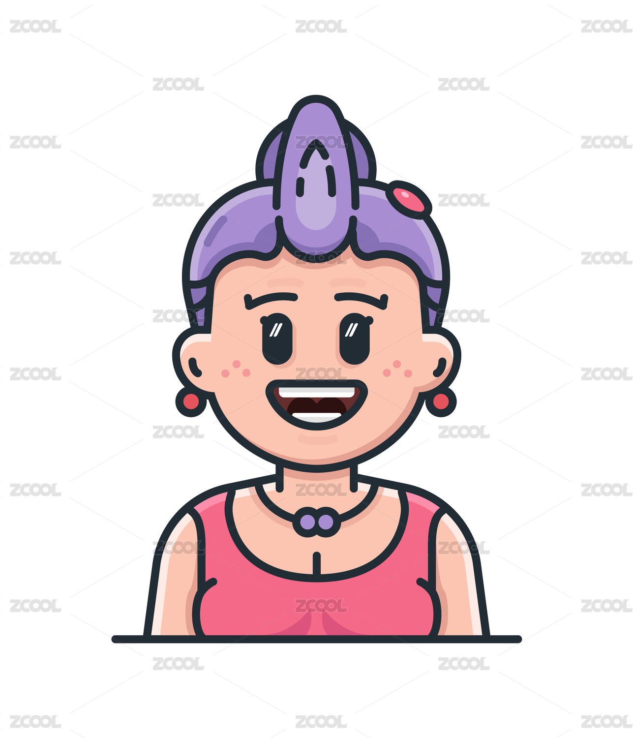 扁平风描边小清新少女人物