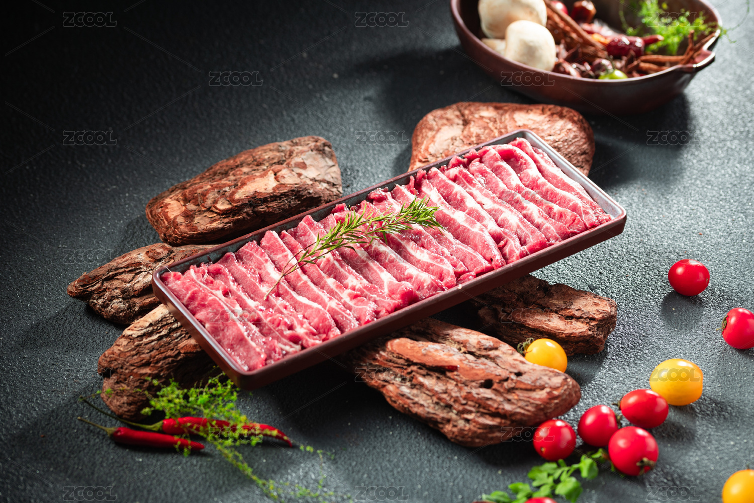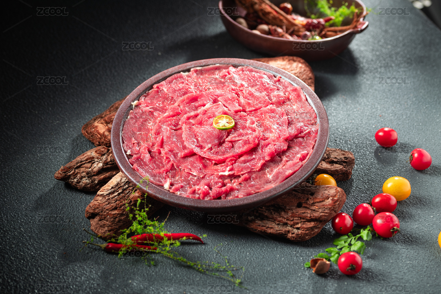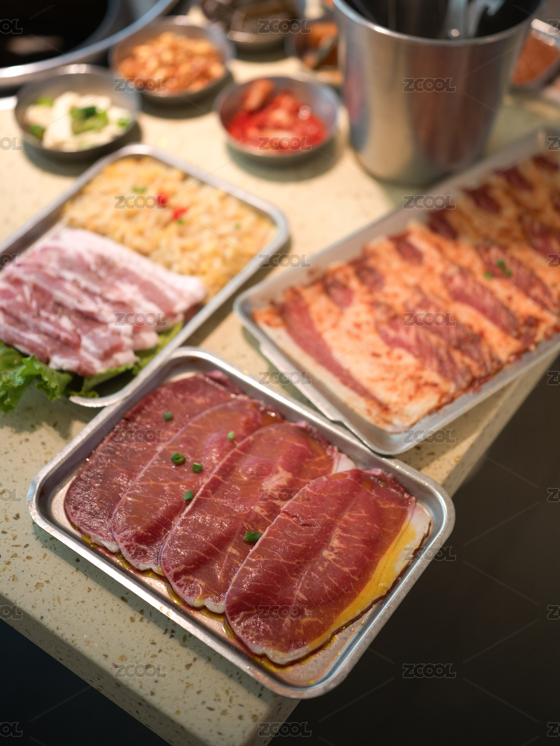 准备好的生肉片和配菜