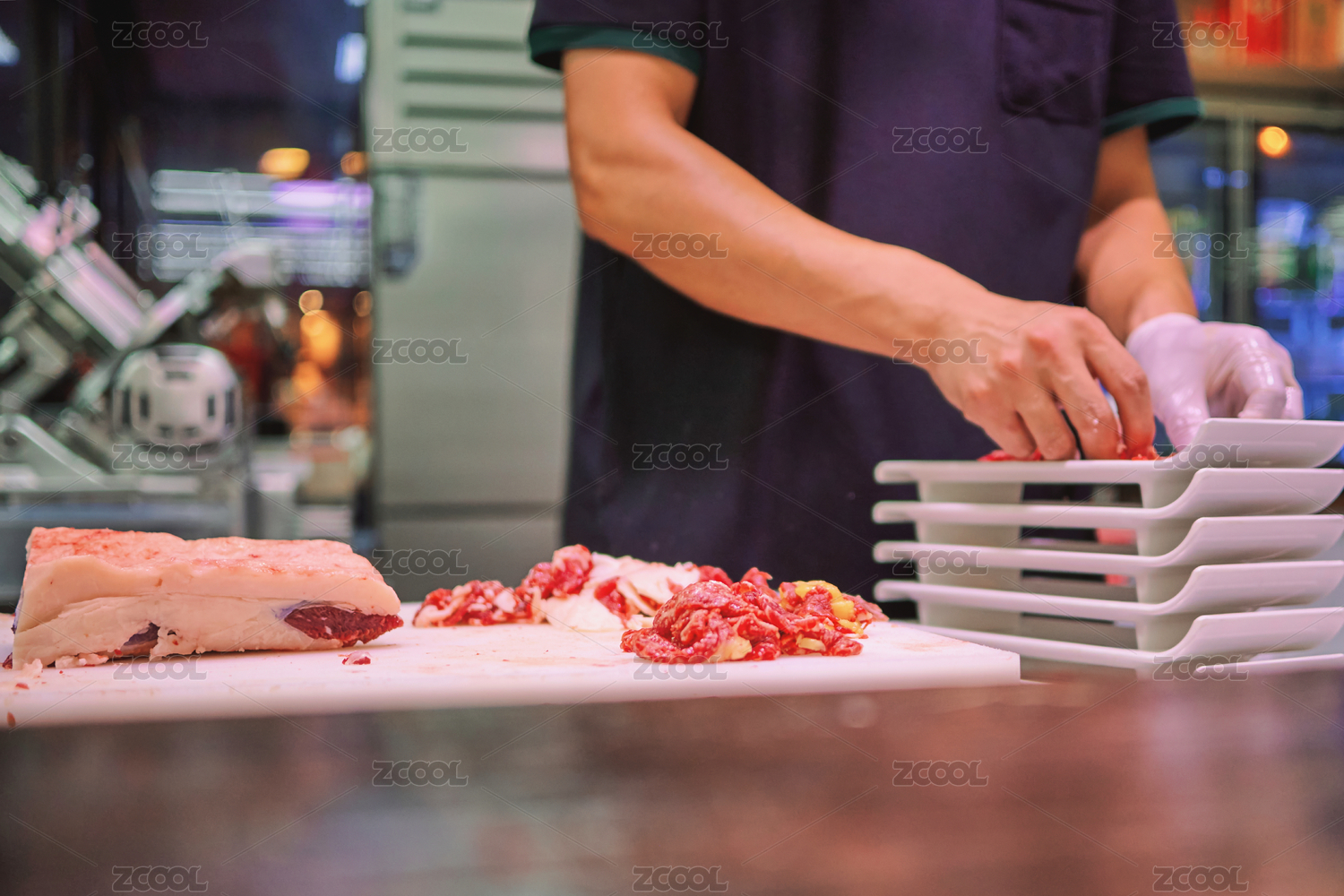 厨师正在准备生肉