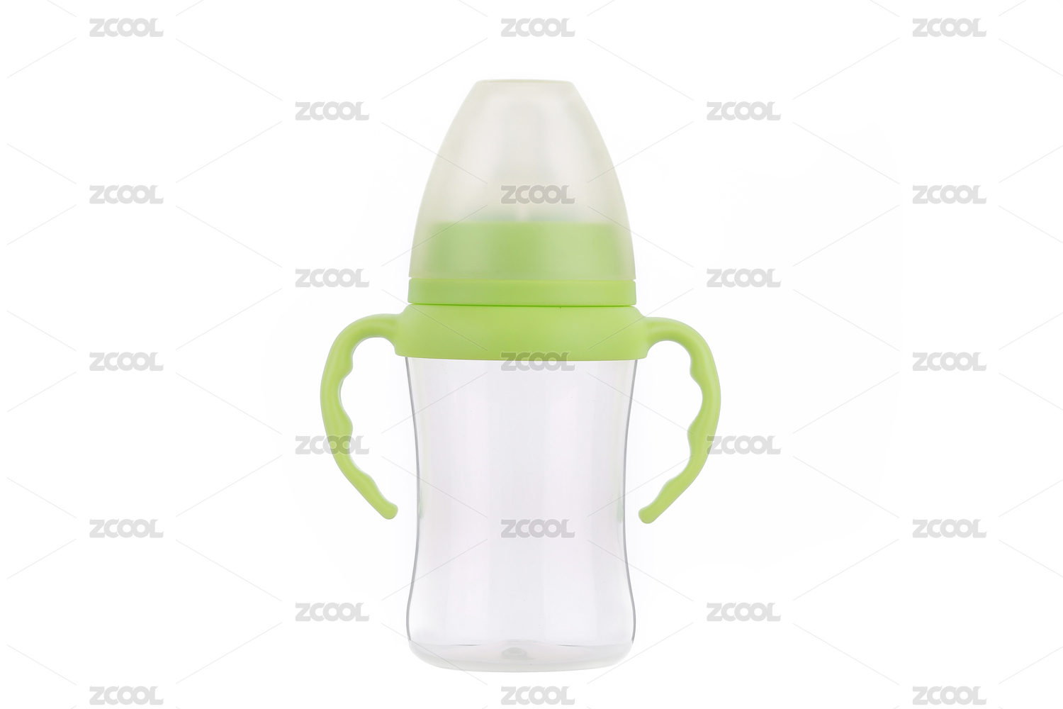 婴儿奶瓶 白色背景绿色母婴用品