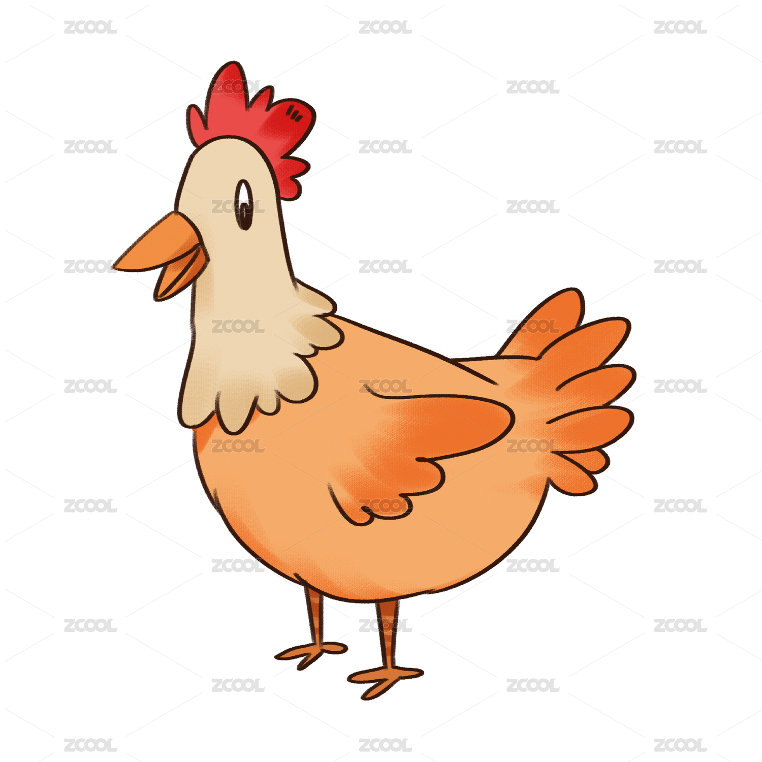 一只早晨咯咯叫的可爱公鸡