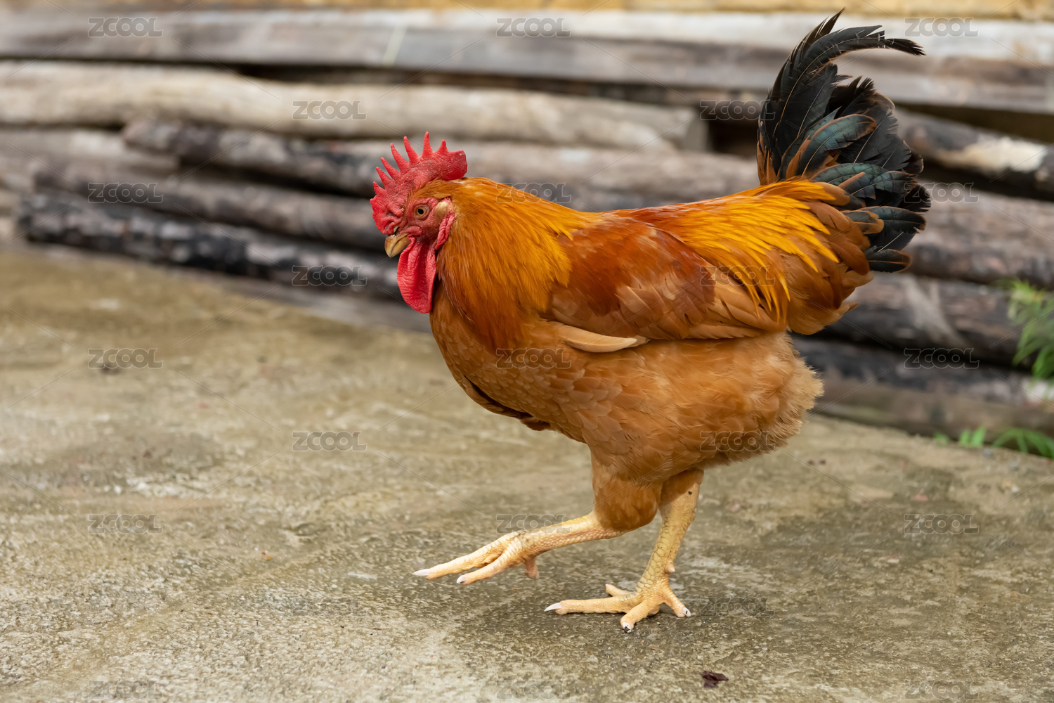 一只野外散养散步的公鸡