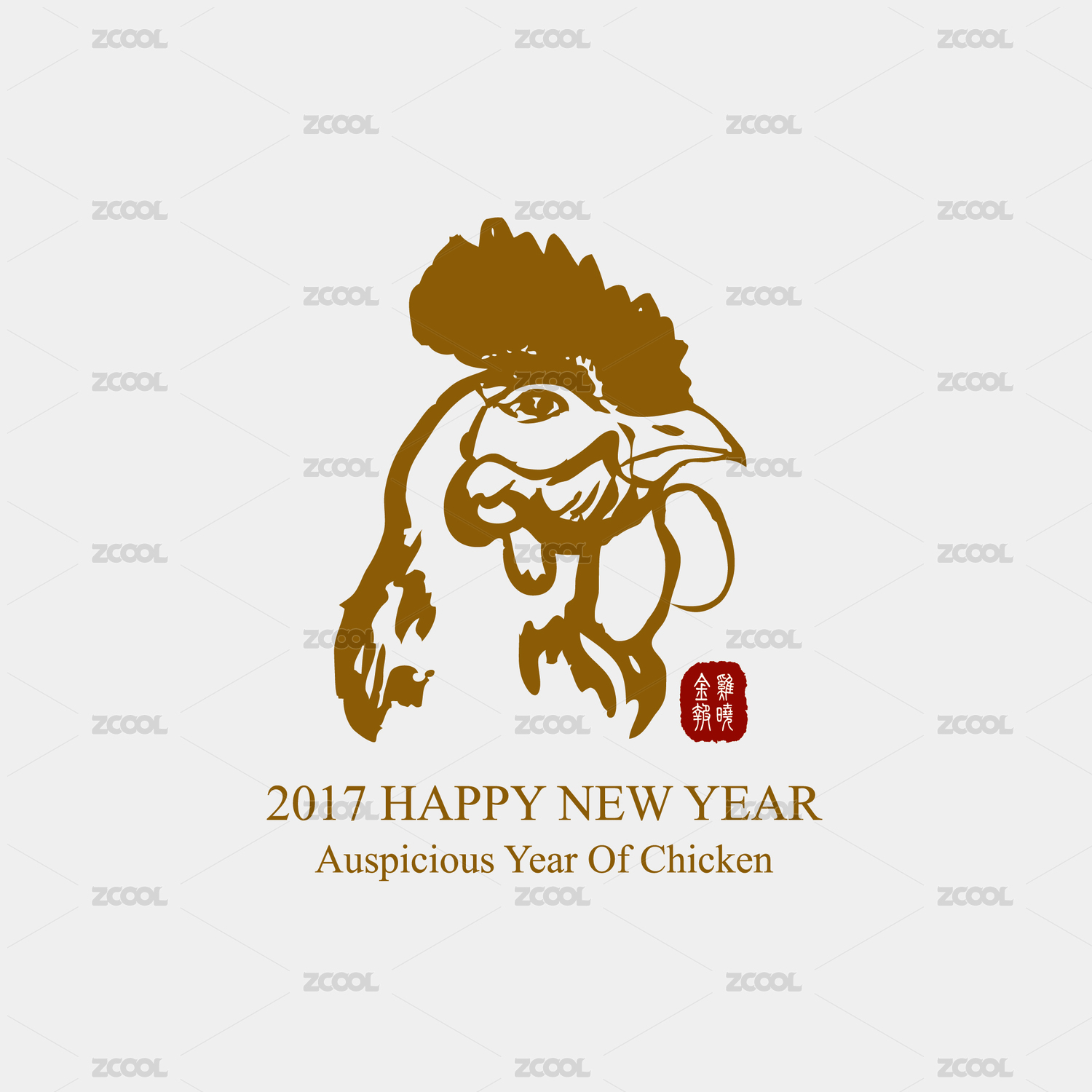 2017鸡年 公鸡水墨手绘矢量插画 中国传统绘画 标志素材