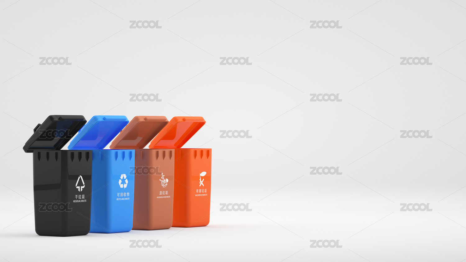 垃圾分类环保题材的垃圾桶背景,三维渲染
