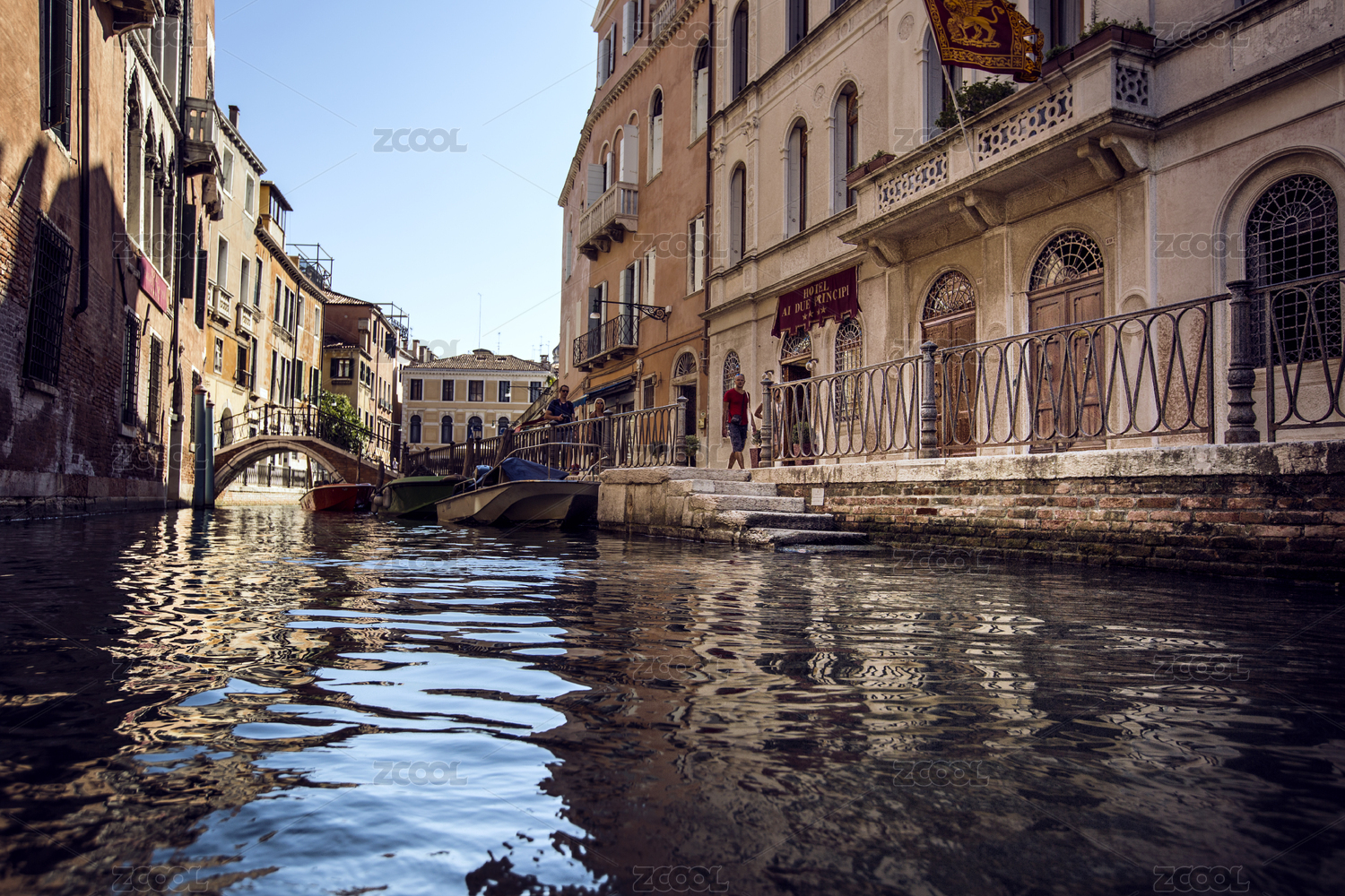 意大利威尼斯水城的水道与贡多拉船