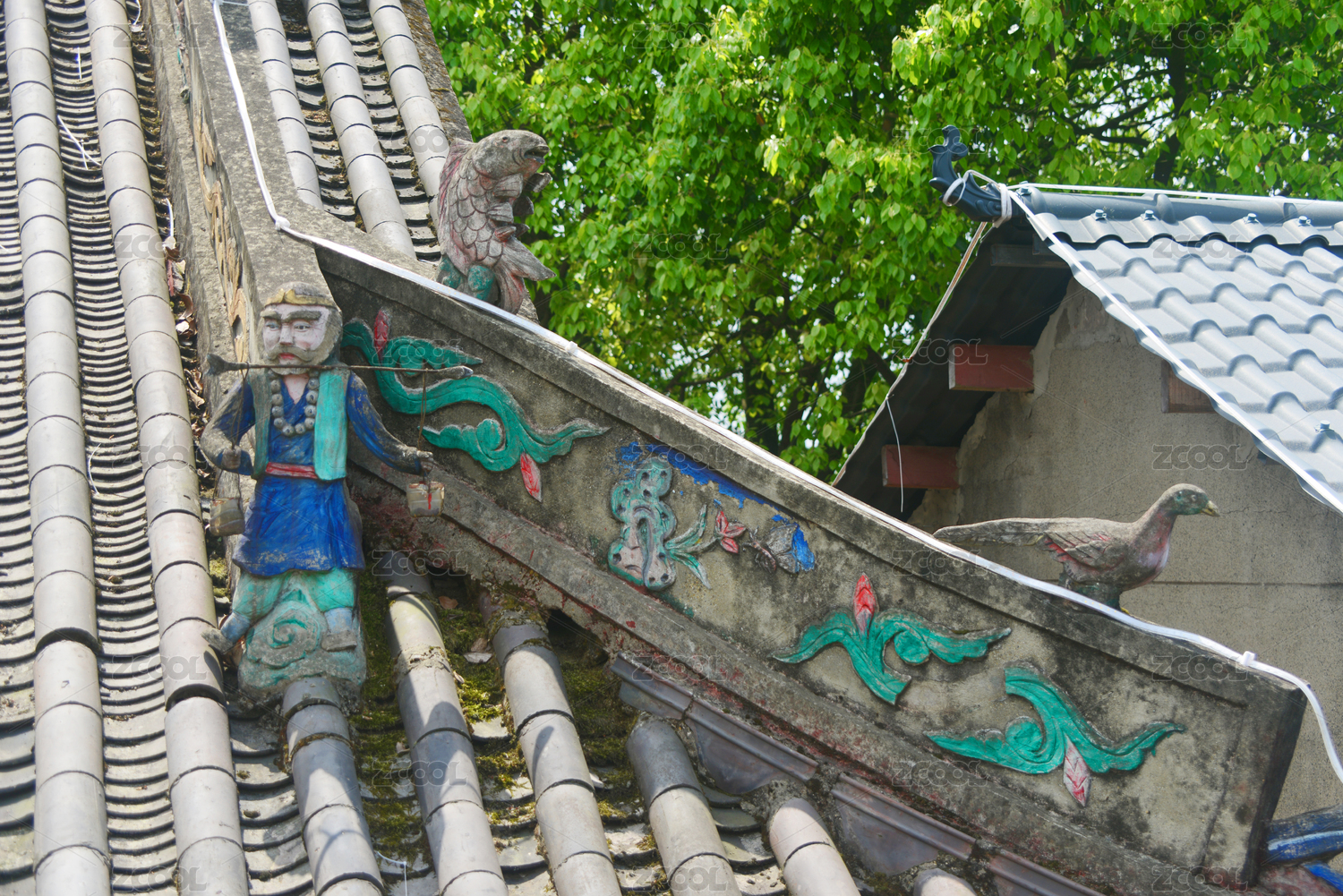 简阳佛兴寺屋顶西游记人物灰塑 猪八戒