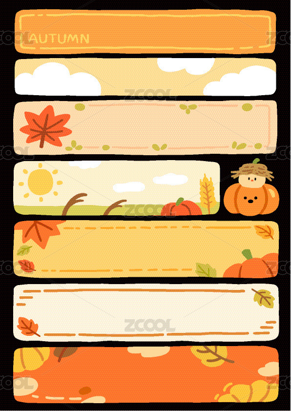 手绘矢量秋分秋天可爱文本框便利贴免扣素材